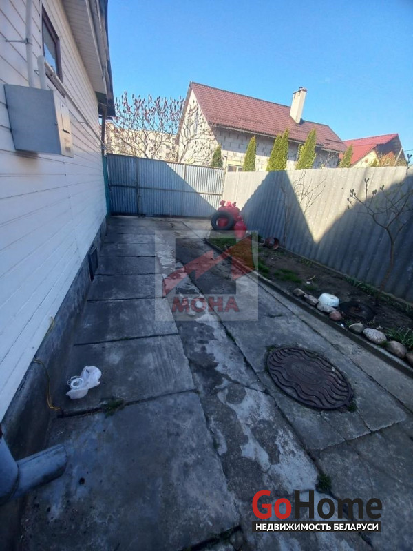 Дом построен из газосиликатных блоков, утеплен пенопластом и обшит сайдингом. Фундамент монолитный ленточный, кровля шифер.