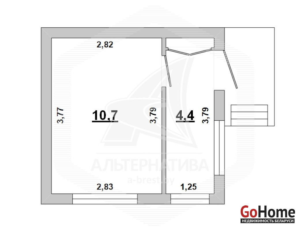 Садовый домик в Брестском р-не. 2001 г.п. 1 этаж. Общ.- 15,4 кв.м. 1 комната.
