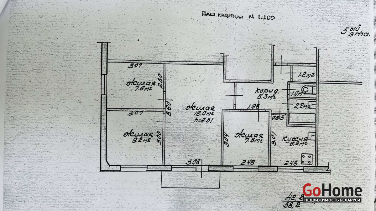 Общая площадь 58,2 кв.м., кухня 6,2 кв.м. Раздельный сан.узел.