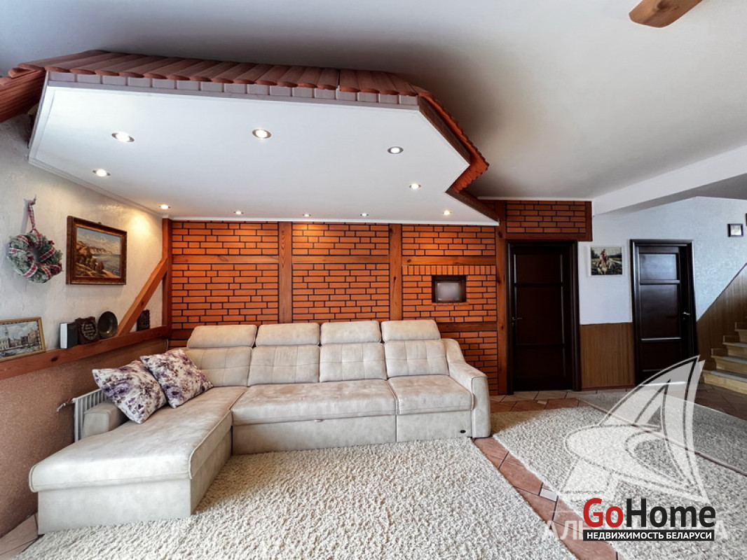 Жилой дом в г.Бресте. 2003 г.п. 1 этаж, мансарда. Общ.СНБ - 273,9 кв.м, общ.- 176,4 кв.м, жил.- 101,9 кв.м, кух.- 30,0 кв.м. 5 комнат, высота потолка - 2,70 м.