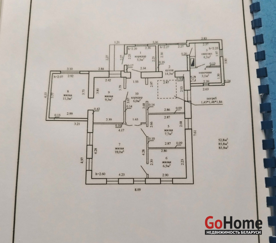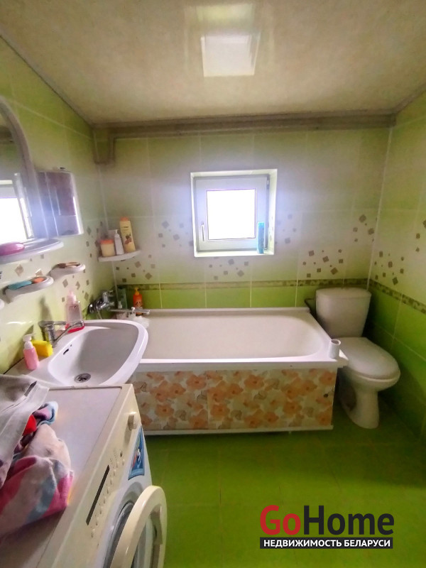 Общая площадь дома составляет 85,8 м², жилая площадь – 52,8 м², а кухня – 14,3 м². В доме установлено газовое отопление и двухконтурный котел, что обеспечивает тепло и комфорт в любое время года. Центральное водоснабжение и новая местная канализация делают проживание удобным. Санузел в доме совмещенный и облицован плиткой, что придает ему современный вид. Полы выполнены из ламината и линолеума, а окна частично заменены на ПВХ, что улучшает тепло- и звукоизоляцию.