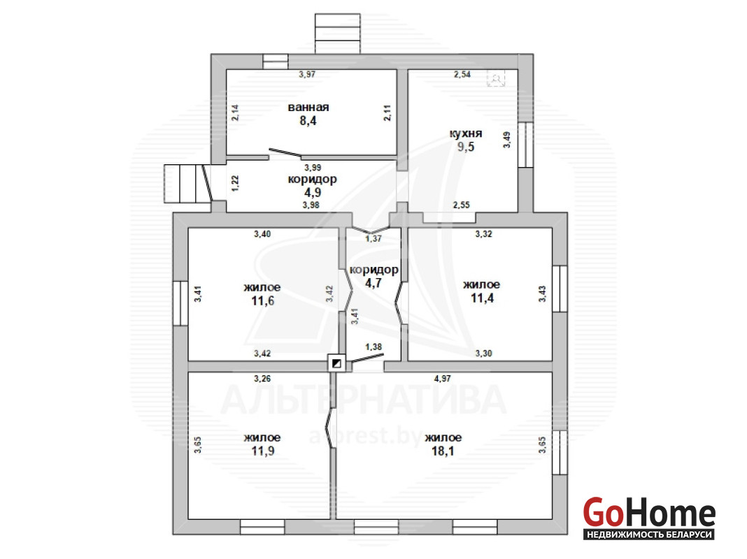 Жилой дом в г.Бресте. 1969 г.п. 1 этаж. Общ.СНБ - 80,5 кв.м, общ.- 80,5 кв.м, жил.- 53,0 кв.м, кух.- 9,5 кв.м. 4 комнаты, высота потолка - 2,80 м.