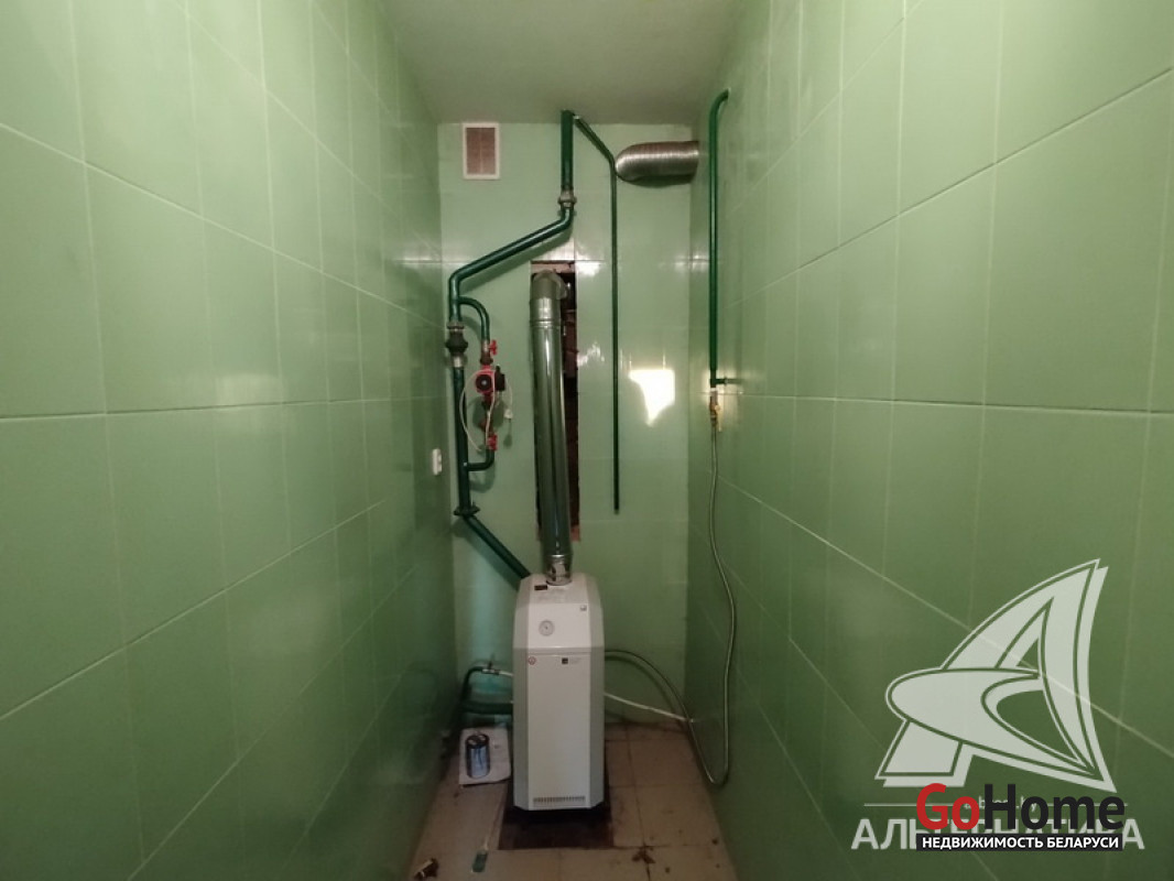 Коммуникации: отопление - газовый котел, газ - централизованный (в доме), водоснабжение - централизованный водопровод, электричество - централизованное, канализация - централизованная.