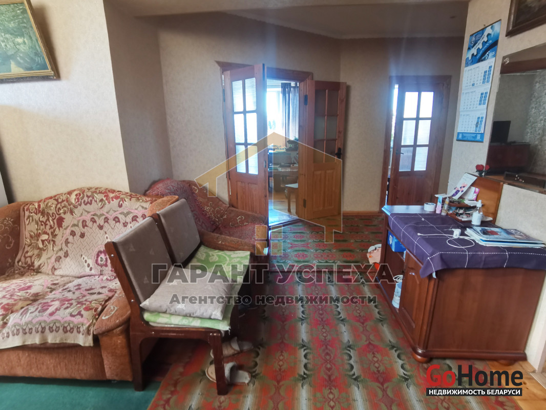 Удобная уникальная планировка: гараж, примыкающий к дому с выходом в баню. Двухкомнатная квартира включает коридор, кухню - котельную, кладовую, совмещенный санузел, 2 жилые комнаты, прихожую.