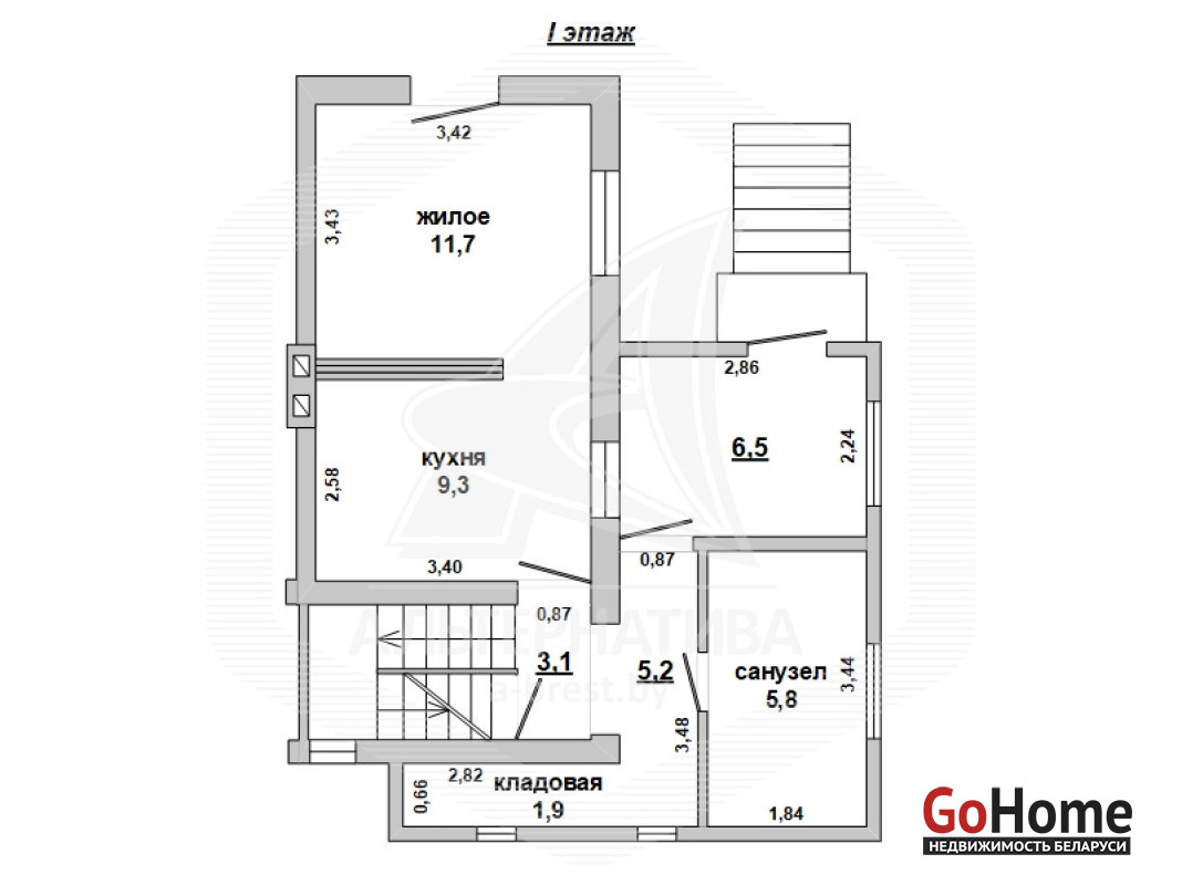 Таунхаус в г.Бресте. 1968 г.п. Реконструкция 2012 г. 1 этаж, мансарда, цокольный этаж. Общ.СНБ - 122,0 кв.м, общ.- 115,5 кв.м, жил.- 45,0 кв.м, кух.- 9,3 кв.м. 4 комнаты, высота потолка - 2,80 м.
