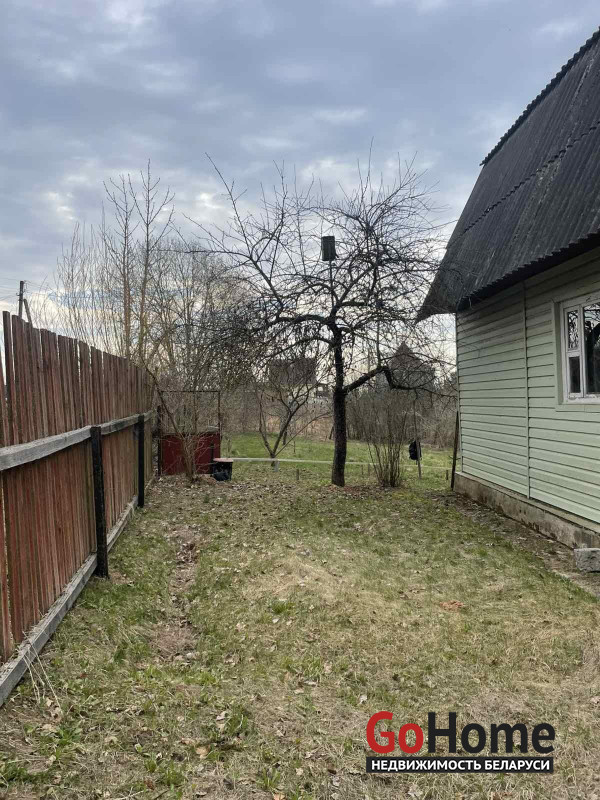 Продается дачный дом в садовом товариществе «Тюльпан-2», построенный в 2005 году. Дом двухуровневый, бревенчатый, обшит сайдингом, общая площадь — 48,6 кв.м. В доме большая веранда, кухня и две комнаты. Отопление печное, установлена новая печь-камин. Водоснабжение — скважина. Крыша покрыта шифером, окна ПВХ. На участке площадью 11 соток, расположенном под наклоном, растут плодово-ягодные насаждения. Имеется гараж, пруд, беседка, парник и сарай. Дача находится в начале товарищества с удобным заездом через шлагбаум. До озера всего 5 минут пешком. Торг.Договор № 88/4 от 15.04.2025г. ООО «Агентство Уют и К». УНП 391850235. Лицензия от 04 апреля 2017 г., выдана бессрочно Министерством юстиции Республики Беларусь и зарегистрирована в едином реестре лицензий за № 34200000021798 на право осуществления деятельности по оказанию риэлтерских услуг.