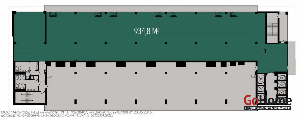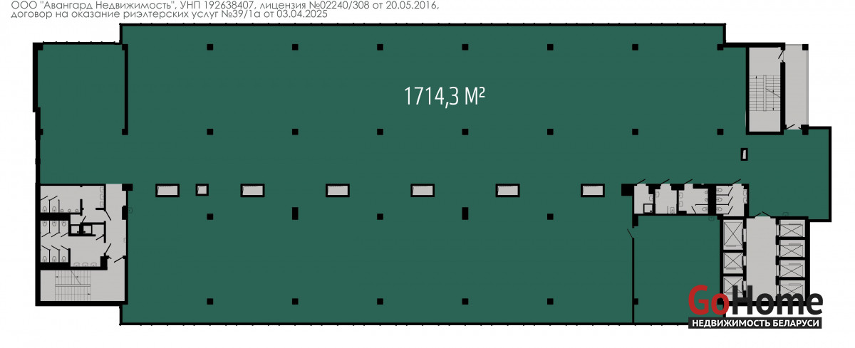 отдельный офисный блок на 13-м этаже площадью 934,8 м2 с высотой потолков 4.5 м.