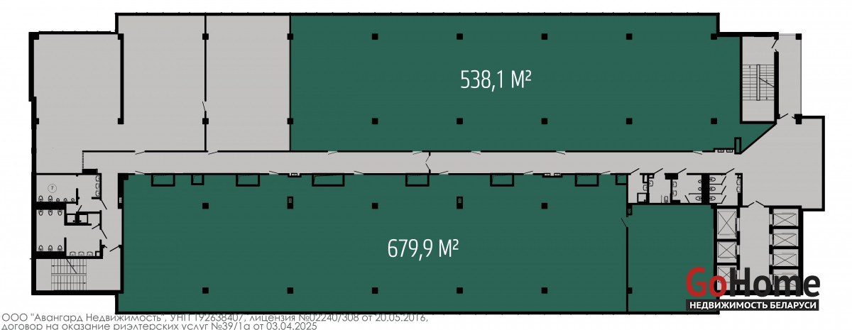 офисы, расположенные на 7-м этаже. Площадь - 538,1 м2 и 679,9 м2, возможна аренда блоками от 100 м2;