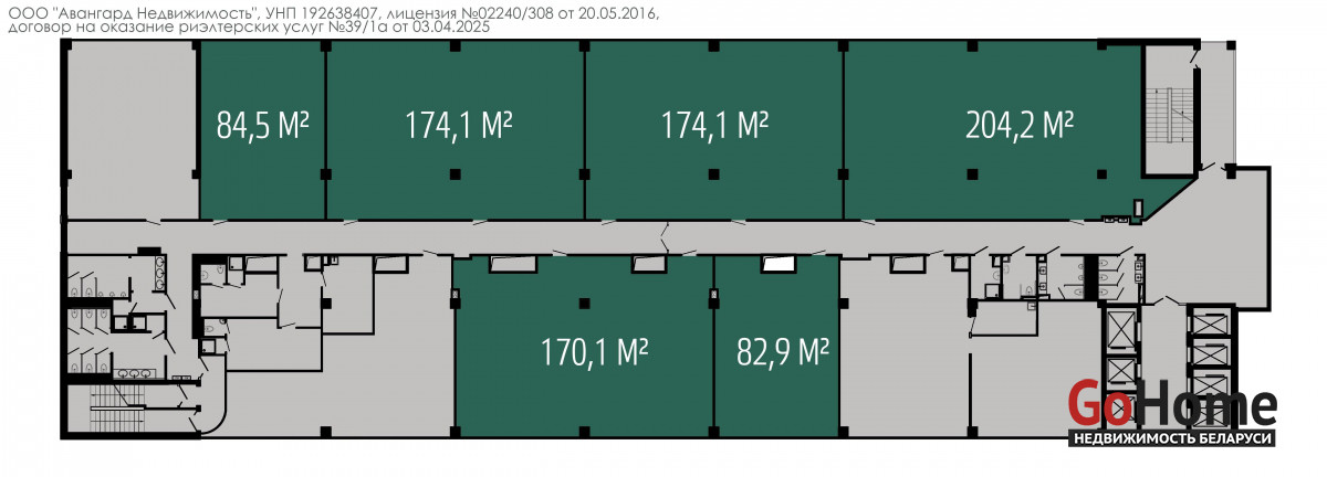 офисы с отделкой на 5-м этаже бизнес-центра. Площадь - 84,5 м2, 174,1 м2, 174,1 м2, 204,2 м2;