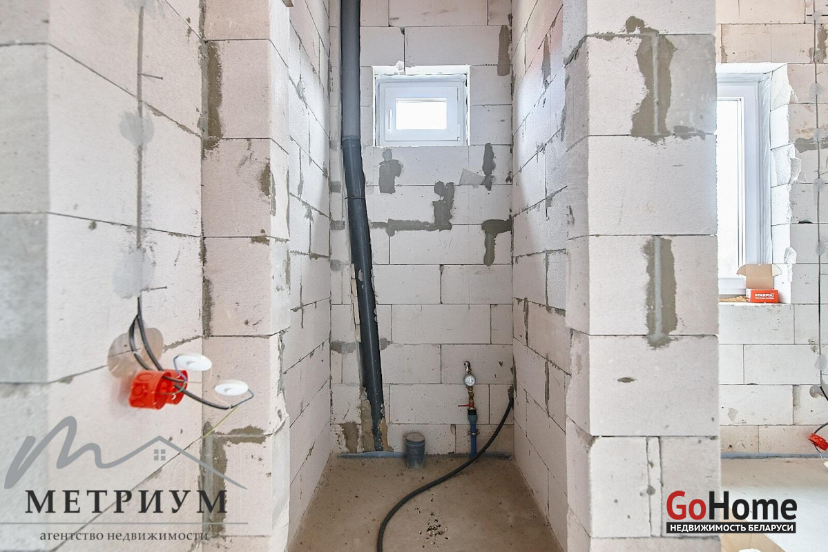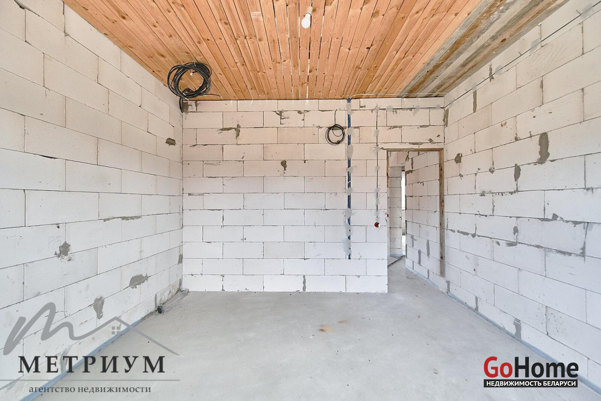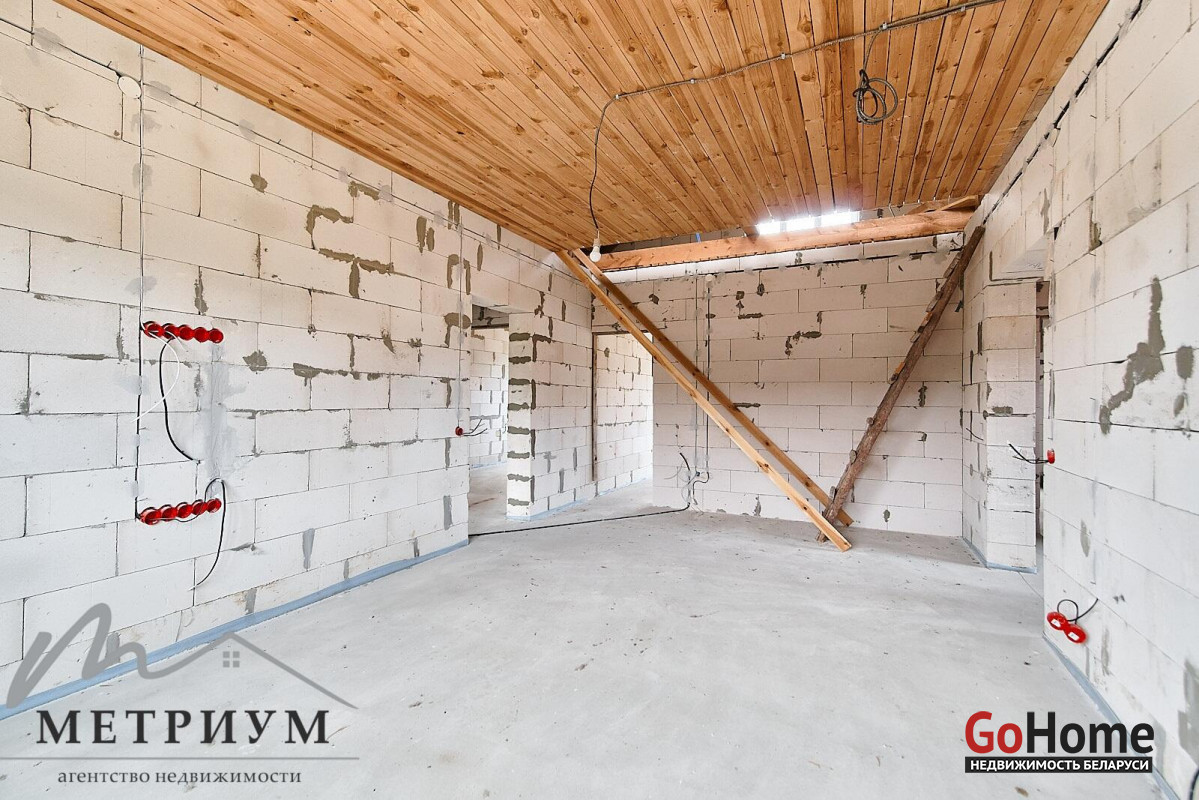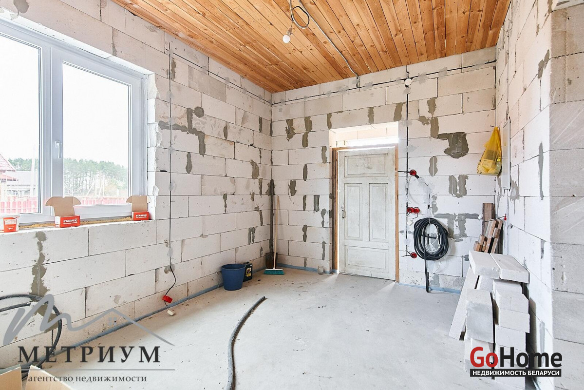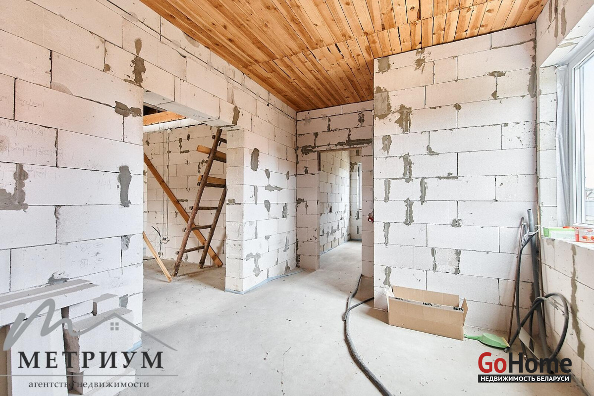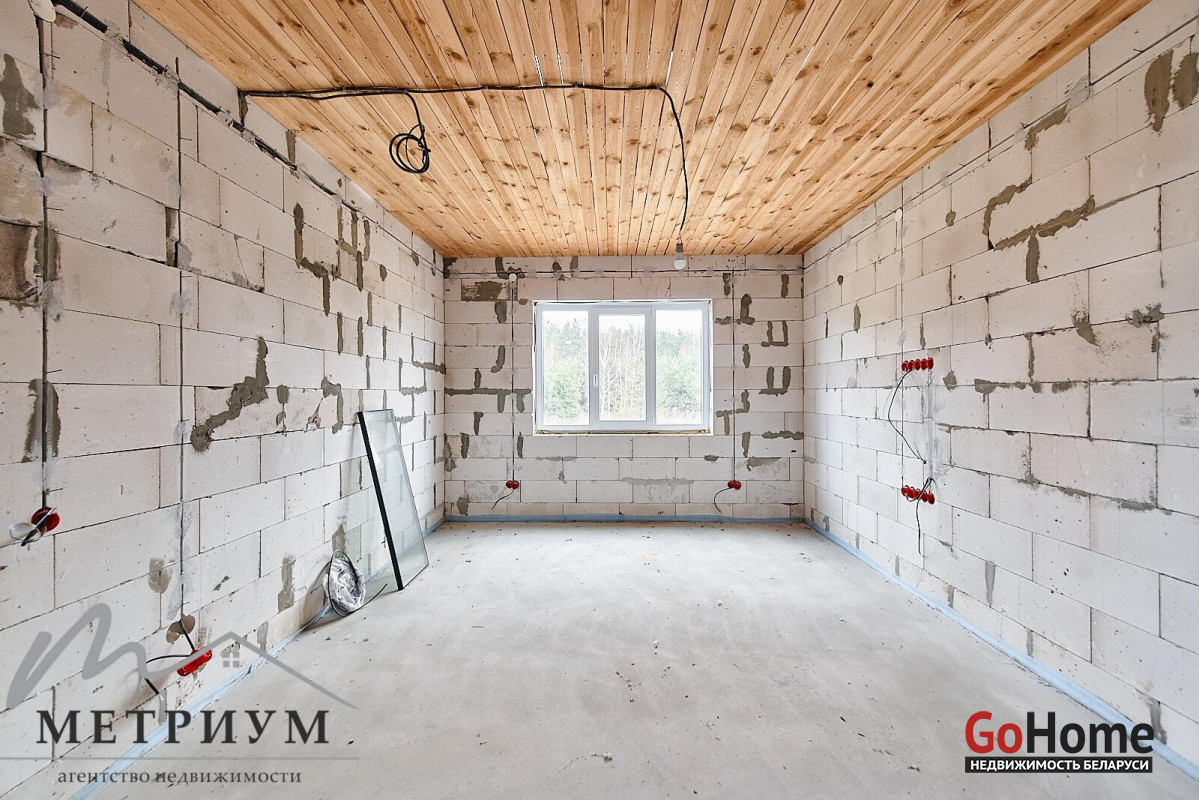 В продаже просторный и светлый дом без внутренней отделки. Сделана разводка электрики по всему дому. В доме разведены канализационные трубы (выведены на улицу). Коммуникации (газ, вода) подведены до участка, не введены в дом.