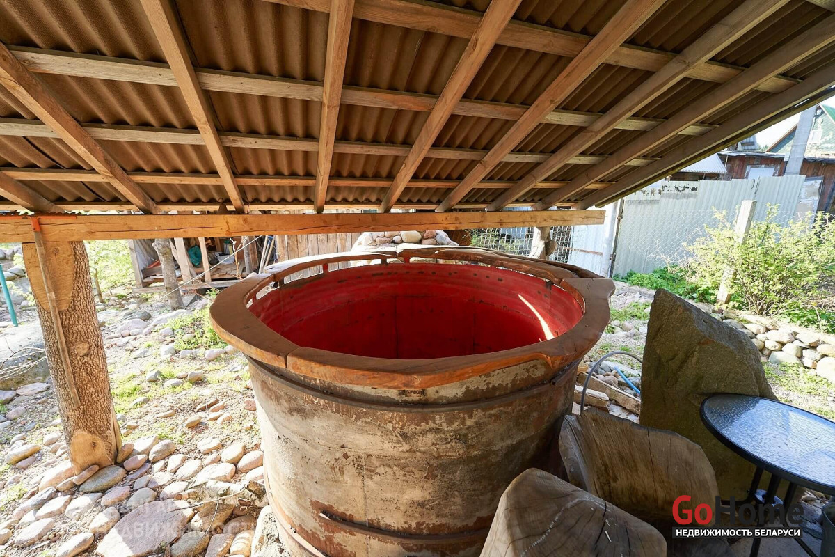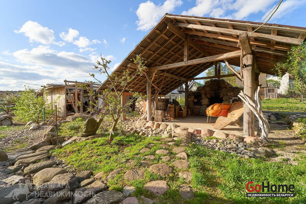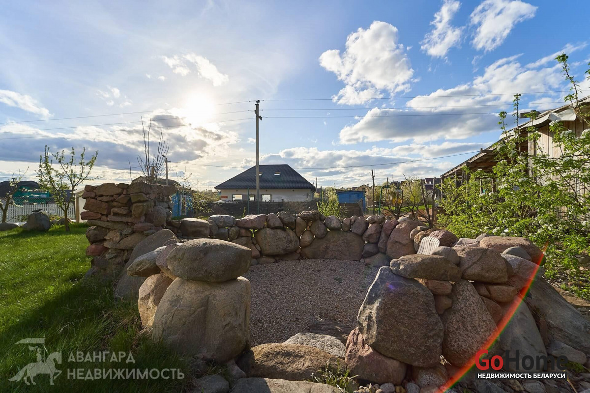 На участке выполнен ландшафтный дизайн с применением камня. Уложен «актикрот». Есть хозпостройка под хранение инвентаря и др. Крытая беседка с печью и подогреваемой купелью. Открытая площадка для отдыха и загорания, выложенная камнем для защиты от ветра.