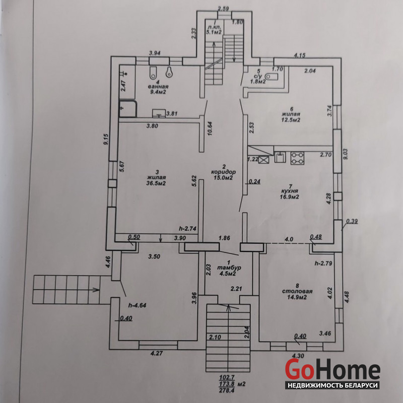 Продаётся двухэтажный блочно-кирпичный дом общей площадью по СНБ 278,4 кв.м., расположенный по адресу: г.Гомель, ул. Электронная.