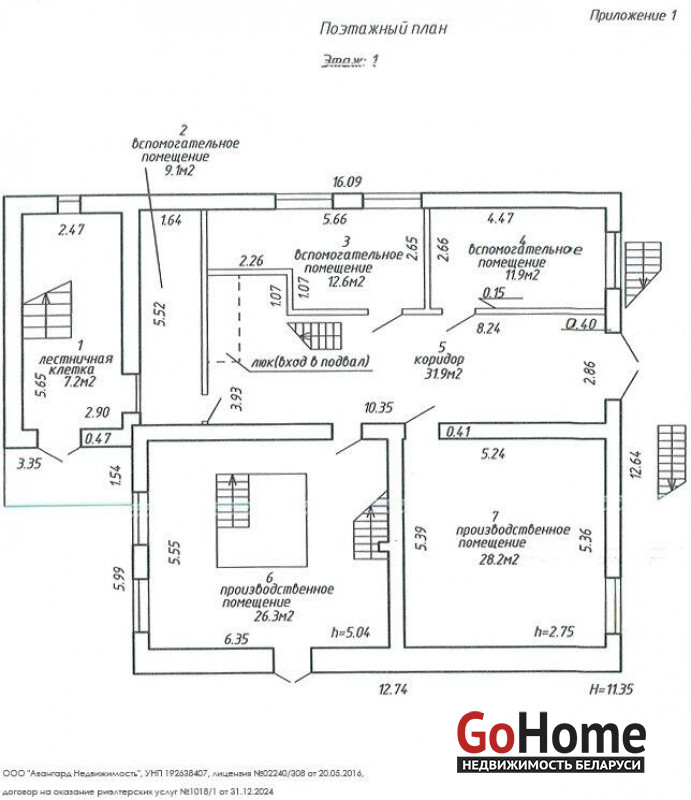 - производственно-складских помещений (подвальный этаж, 1-й этаж, 2-й этаж);