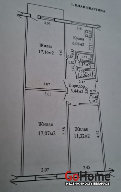 Комнаты разденьные 2 комнаты 17.16м²и 17.07, 1 комната 11.32 м². Кухня 6 м², имеется подвал 7м²