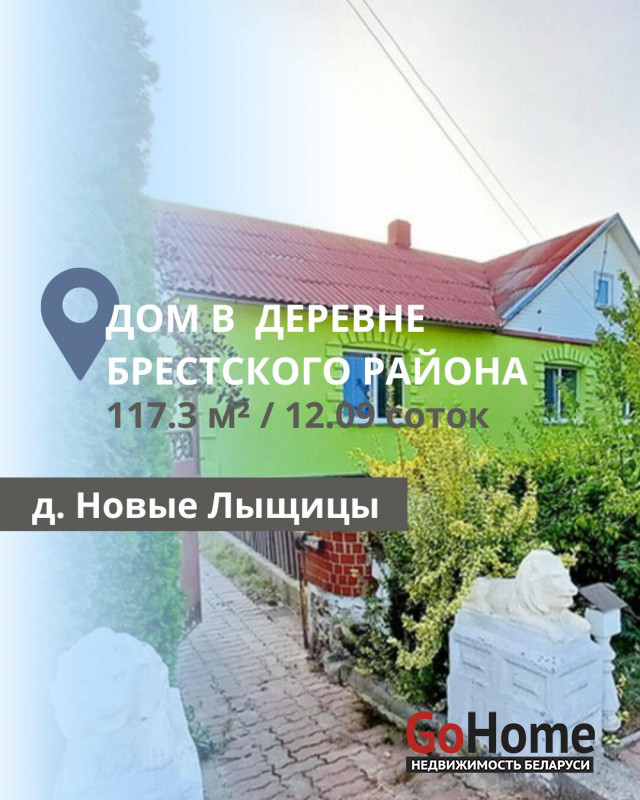 Одноэтажный жилой дом, построенный в 1988 году, расположен в живописной деревне Новые Лыщицы Брестского района. Общая площадь дома составляет 117,3 кв.м, из которых жилая площадь — 66,2 кв.м. Просторная планировка включает пять жилых комнат, кухню площадью 17,6 кв.м, санузел и вспомогательные помещения. Высота потолка достигает 3,0 м, что создает ощущение простора и комфорта.