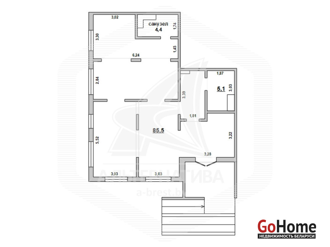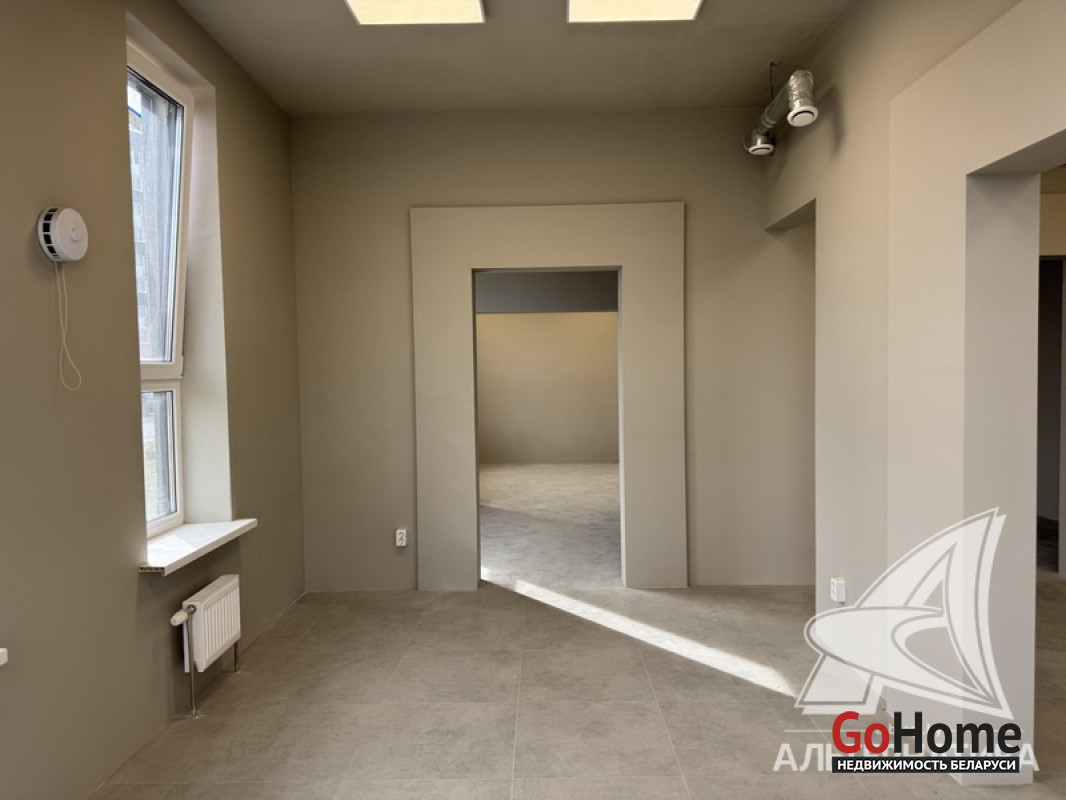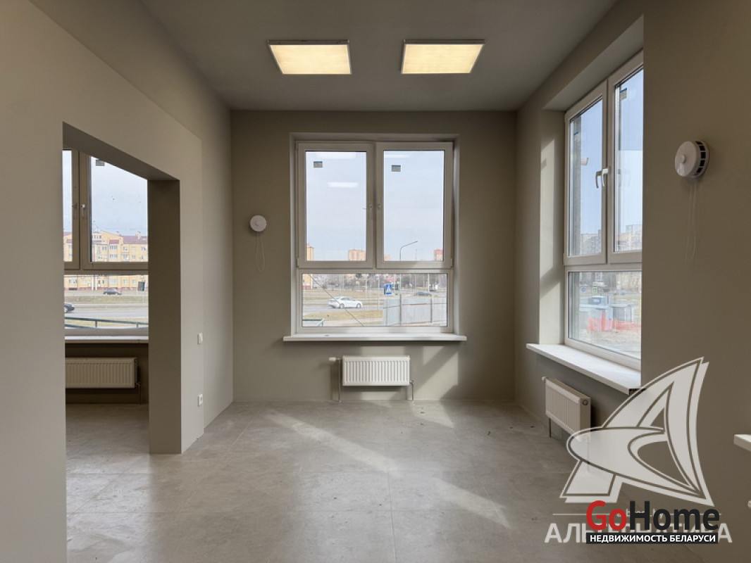 Административно - торговое помещение в собственность в микрорайоне Юго - Запад (р - н ул. Ивашутина) города Бреста общей площадью 95 кв.м. Изолированное помещение с отдельным входом расположено на 1 (первом) этаже жилого дома 2024 года постройки. Сделан ремонт помещения. Зал площадью 85,5 кв.м (состоит из нескольких проходных помещений), подсобное помещение (5,1 кв.м), отдельный санузел (4,4 кв.м). Технические характеристики помещения: полы - плитка, стены оштукатурены, окрашены, окна, двери - ПВХ. Оборудована пожарная сигнализация, вентиляция, установлены индивидуальные приборы учета электричества, водоснабжения и тепла. Цена указана с НДС. Рассматриваются все варианты. Лот - 250838