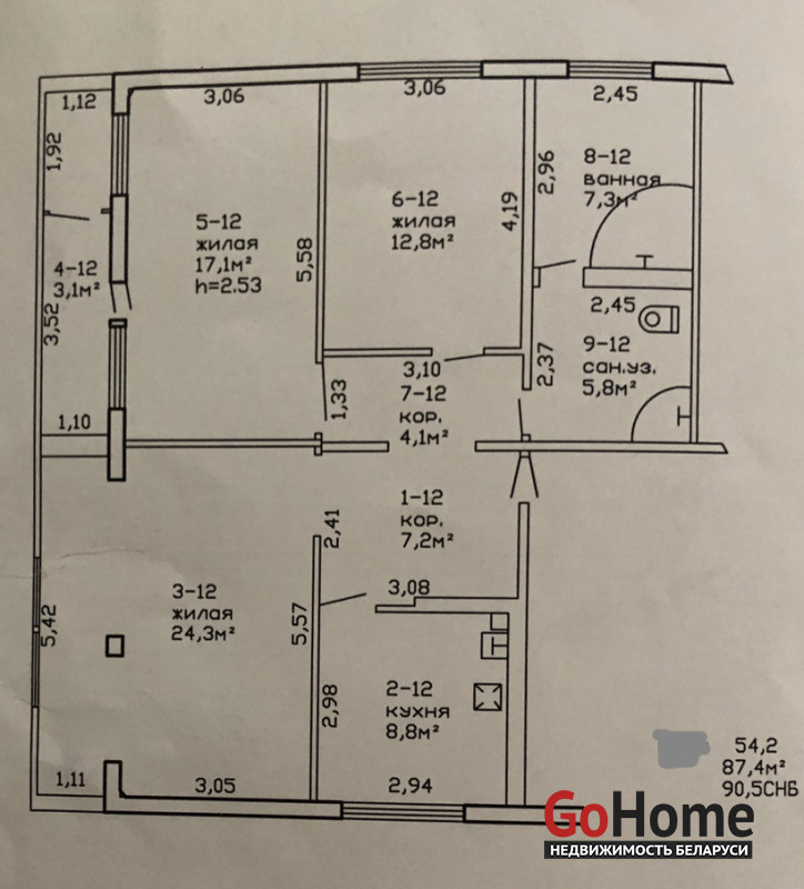 Эксклюзивная квартира( перепланировка)! Общая площадь по СНБ = 90,5 кВ.м.