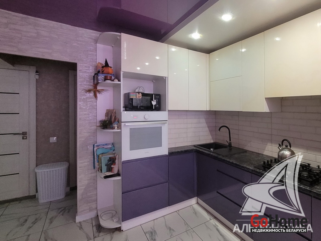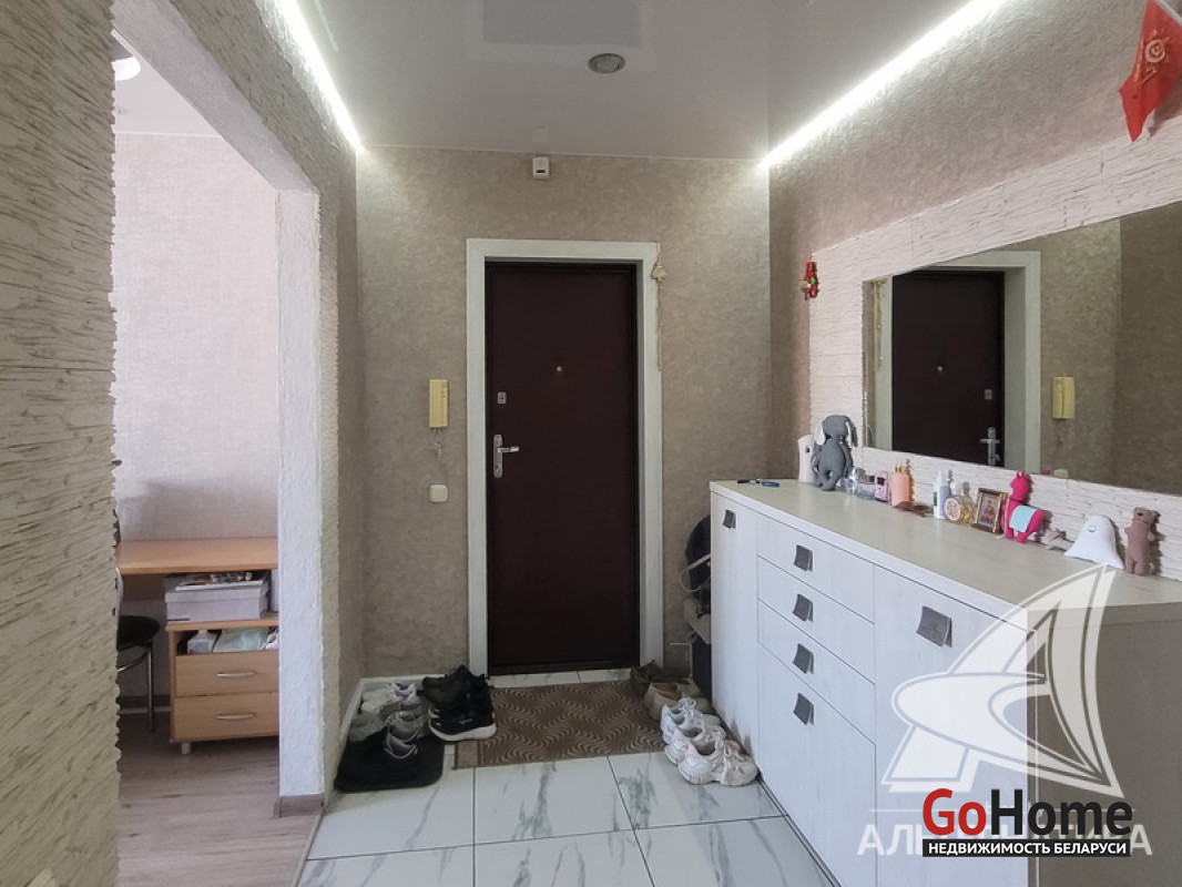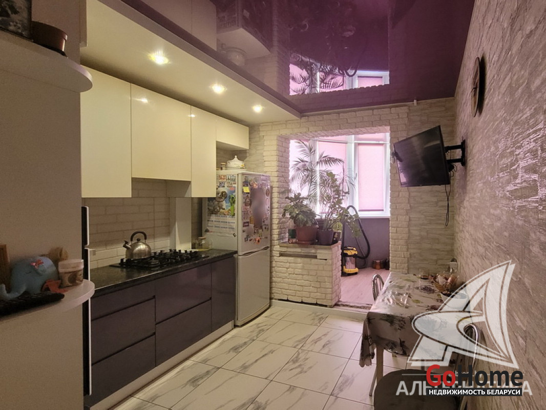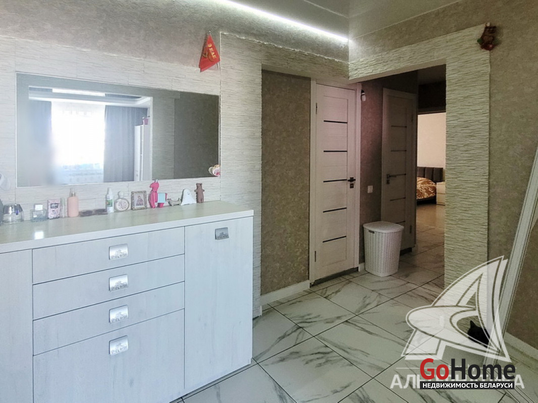 3-комнатная квартира, г. Брест, ул. Орловская, 1988 г.п., 8 / 9 панель, 70,4 / 66,1 / 41,2 / 9,1, санузел раздельный, две лоджии застеклены, стеклопакеты, межкомнатные двери - МДФ, входная дверь металлическая, потолки комбинированные, натяжные с разноплановой системой освещения (2,62 м), полы - ламинат и плитка (положены на стяжку), стены оклеены обоями, отделка камнем, имитация кладки, в санузле современная плитка, заменена сантехника, заменен полотенцесушитель, заменены сантехнические трубы, домофон. Кухонный гарнитур, варочная поверхность, встроенный шкаф. Квартира с хорошим ремонтом. Один пассажирский лифт. Лот - 250858