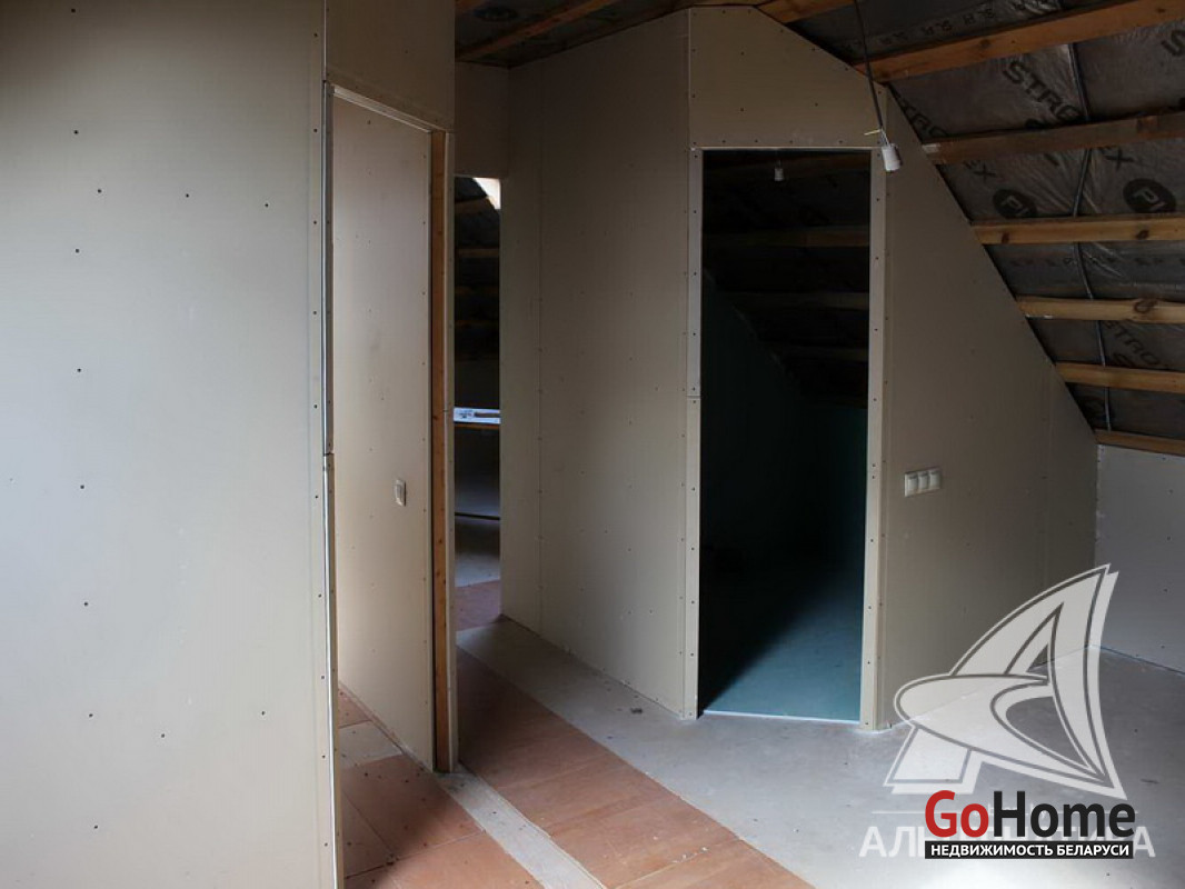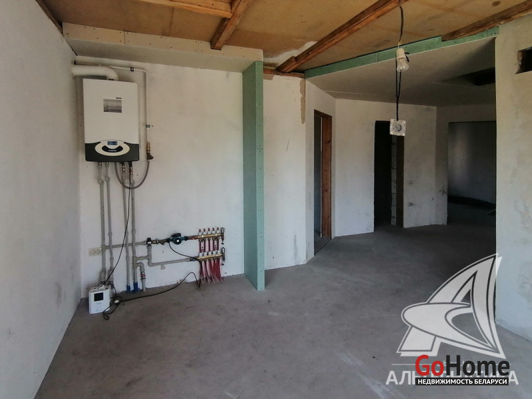 Жилой дом под чистовую отделку в Брестском р-не. 2018 г.п. 1 этаж, мансарда. Общ.СНБ - 168,7 кв.м, общ.- 163,0 кв.м, жил.- 100,2 кв.м, кух.- 13,6 кв.м. 5 комнат, высота потолка - 2,80 м.