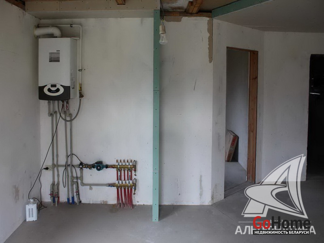 Коммуникации: отопление - газовый котел, газ - централизованный (в доме), водоснабжение - скважина и гидрофор, электричество - централизованное, канализация - автономная.