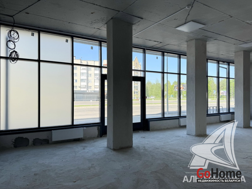 Административно - торговое помещение в собственность в городе Кобрин Брестской области общей площадью 94,3 кв.м. Изолированное помещение с отдельным входом расположено на 1 (первом) этаже жилого дома 2025 года постройки. Без внутренней отделки. Зал площадью 85,9 кв.м, подсобное помещение (4,4 кв.м), отдельный санузел (4 кв.м). Оборудована пожарная сигнализация, установлены индивидуальные приборы учета электроэнергии, водоснабжения и тепла. Цена указана с НДС. Рассматриваются все варианты. Лот - 250867