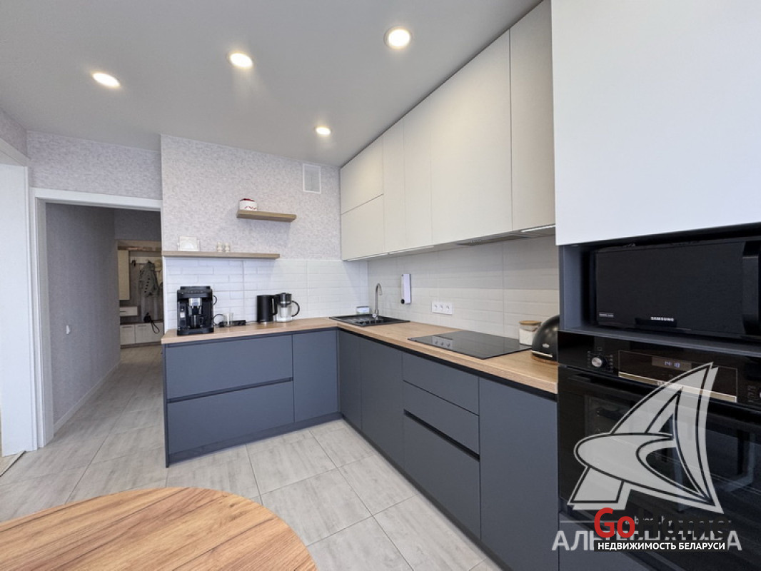 3-комнатная квартира, г. Брест, ул. Героев обороны Брестской Крепости, 2021 г.п., 15 / 16 панель, 83,1 / 80,5 / 47,8 / 11,2, санузел раздельный, лоджия застеклена, французский балкон, стеклопакеты, окна во французском стиле (в кухне, в зале), одноуровневые натяжные потолки, полы - ламинат и плитка (положены на стяжку), стены оклеены обоями, в санузле современная плитка, видеодомофон, домофон. Кухонный гарнитур, варочная поверхность и духовой шкаф (Bosch), посудомоечная машина, вытяжка, холодильник. Квартира с индивидуальными дизайнерскими решениями. Чистый подъезд. Тамбур на две квартиры. Пассажирский и грузовой лифты. На площадке имеется закрытое место для колясок и велосипедов. Во дворе игровая детская площадка, парковка для автомобилей. Лот - 250890