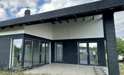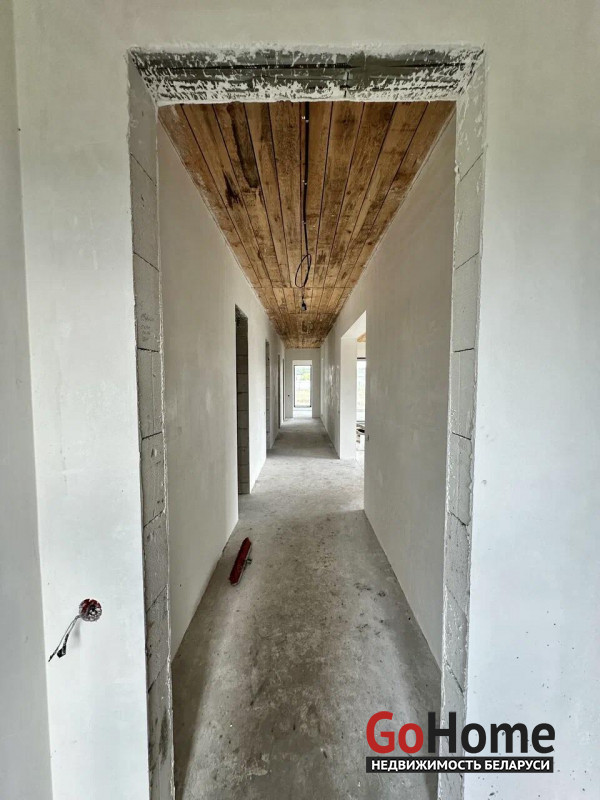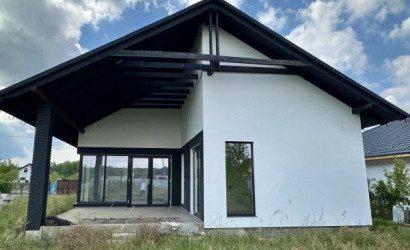 Строение выполнено из блоков, утепленных пенополистиролом и оштукатуренных, крыша покрыта металлочерепицей. Окна изготовлены из 5-камерного немецкого профиля с тонированным стеклом, а входная дверь металлическая. Коммуникации включают трехфазное электричество, воду от скважины с гидрофором, а также водяные теплые полы по всему дому с выводами под радиаторы в спальнях. Газ находится рядом с домом, в гостиной предусмотрен дымоход под камин. Участок огорожен по периметру металлопрофилем и рабицей, установлены откатные ворота.