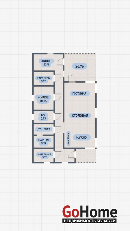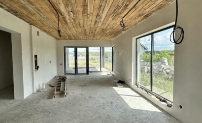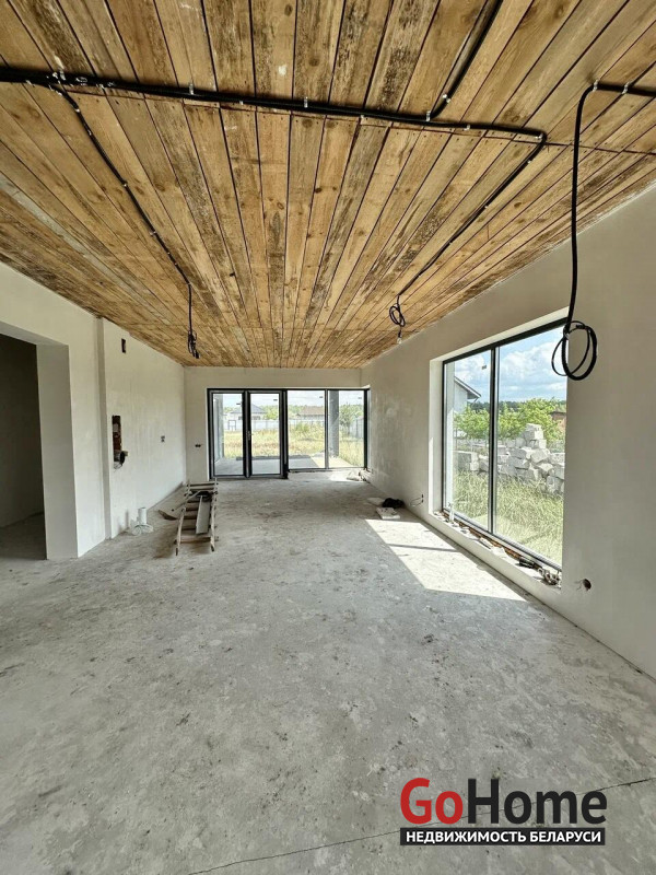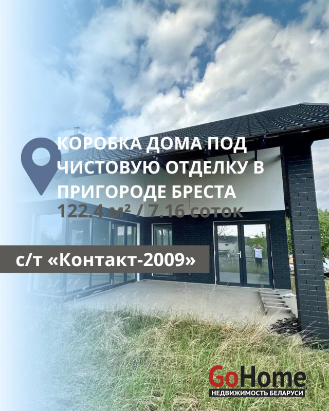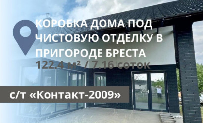 В продаже дом под чистовую отделку в садовом товариществе «Контакт-2009» общей площадью 122,4 м2, расположенный на участке размером 7,16 соток (36 х 20 м). Внутри дома предусмотрены теплые полы и залита финишная стяжка, а электрика разведена по всем помещениям. Стены отделаны финишной штукатуркой, а остекление и фурнитура выполнены от немецкого бренда Roto. Проект включает санузел площадью 5,1 м2 и парную с душевой и предбанником общей площадью 10,8 м2. Также в доме находятся две спальни размером 10,5 м2 и 13,5 м2, гардероб площадью 6 м2 и просторная кухня-столовая общей площадью 63,2 м2 с выходом на террасу площадью 26,8 м2. К кухне примыкает кладовая размером 2,3 м2.