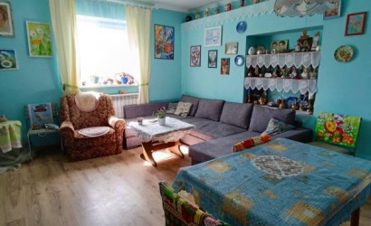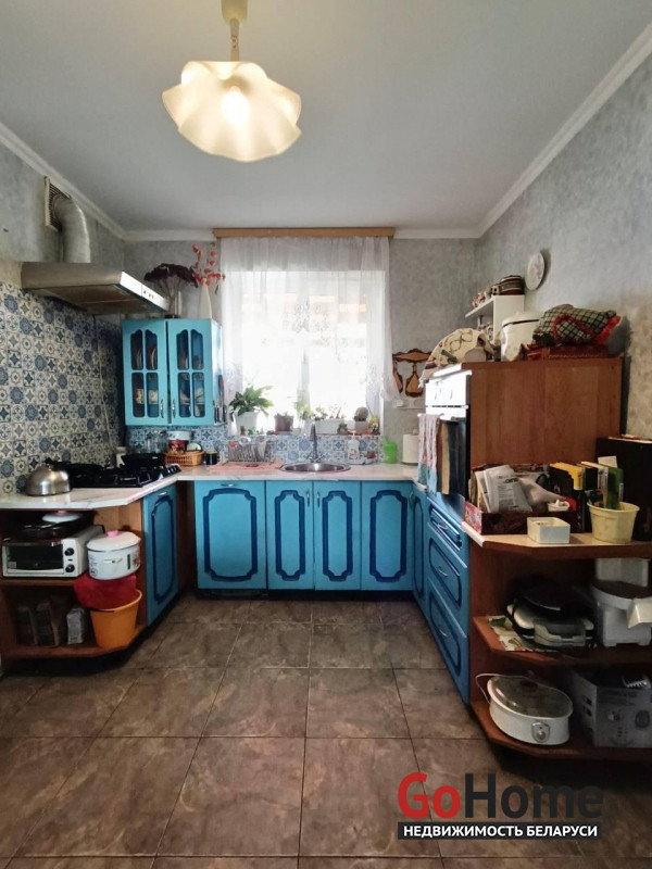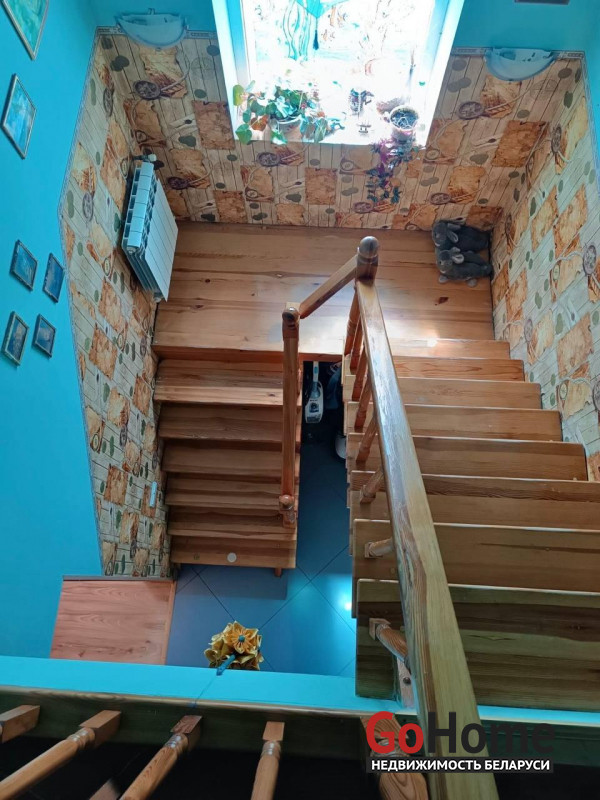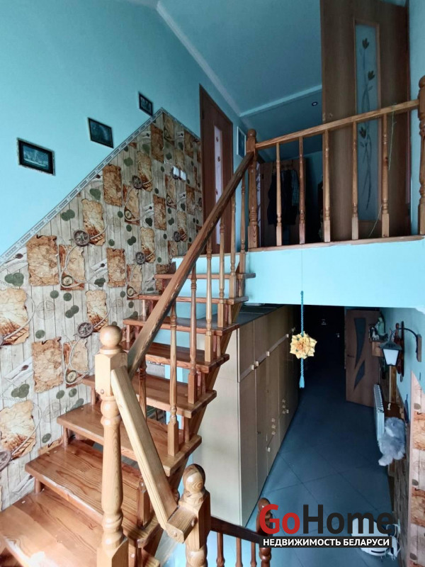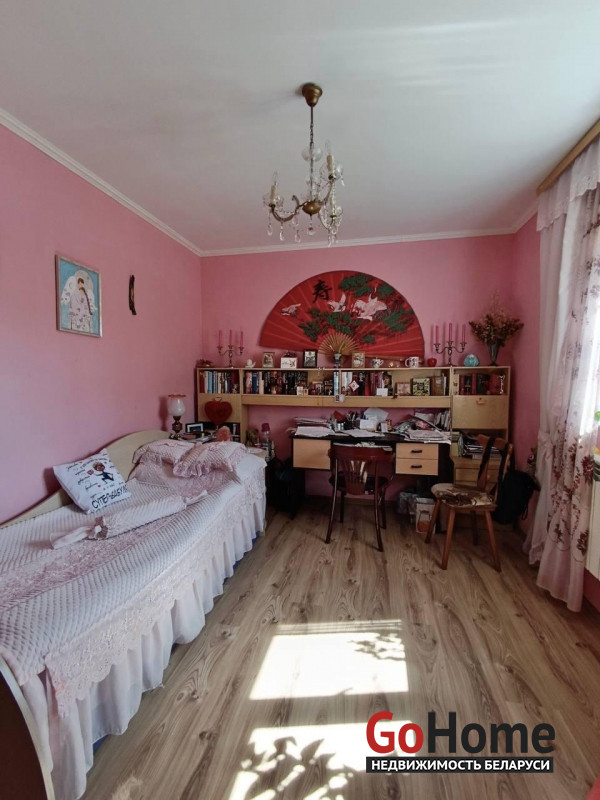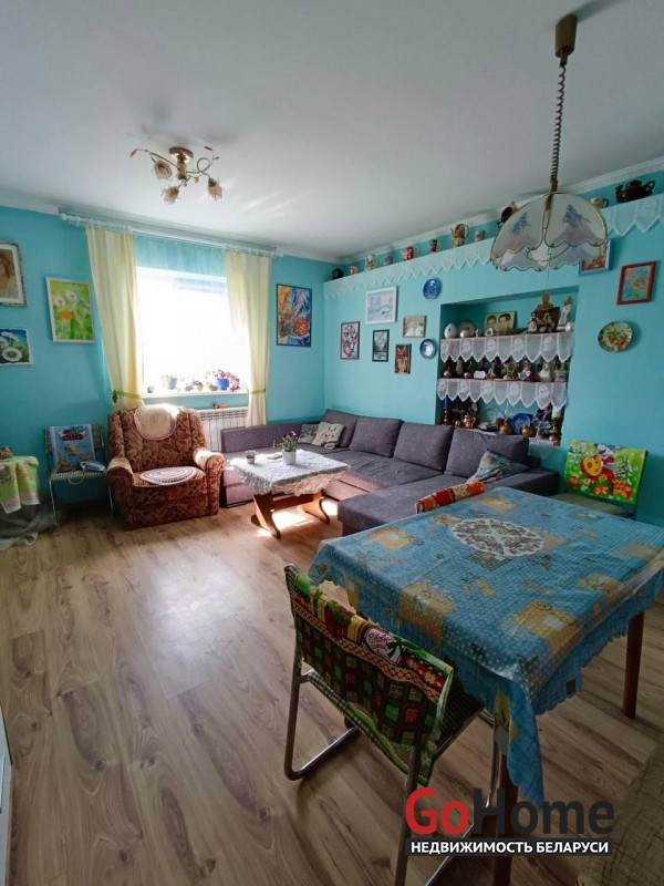 Внутри расположены 7 жилых комнат, кухня площадью 9,6 м2, котельня (4,6 м2) и раздельный санузел. Дом выполнен с качественным ремонтом: окна ПВХ, металлические входные двери, полы из плитки и ламината, потолки снежка, а стены оформлены окраской и обоями. Современный санузел отделан плиткой, а в коридоре, санузле и кухне установлены теплые полы.