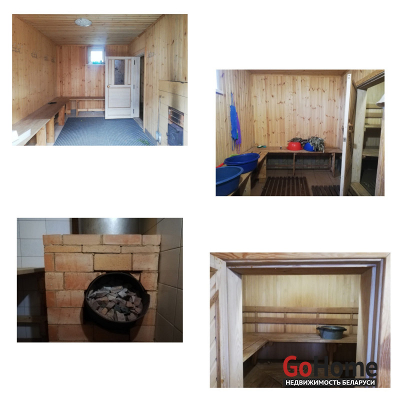 На участке расположены хозяйственные постройки с гаражом на две машины, помещением для хранения продуктов и инвентаря. Также имеется баня с большой комнатой отдыха, помывочной и парилкой.