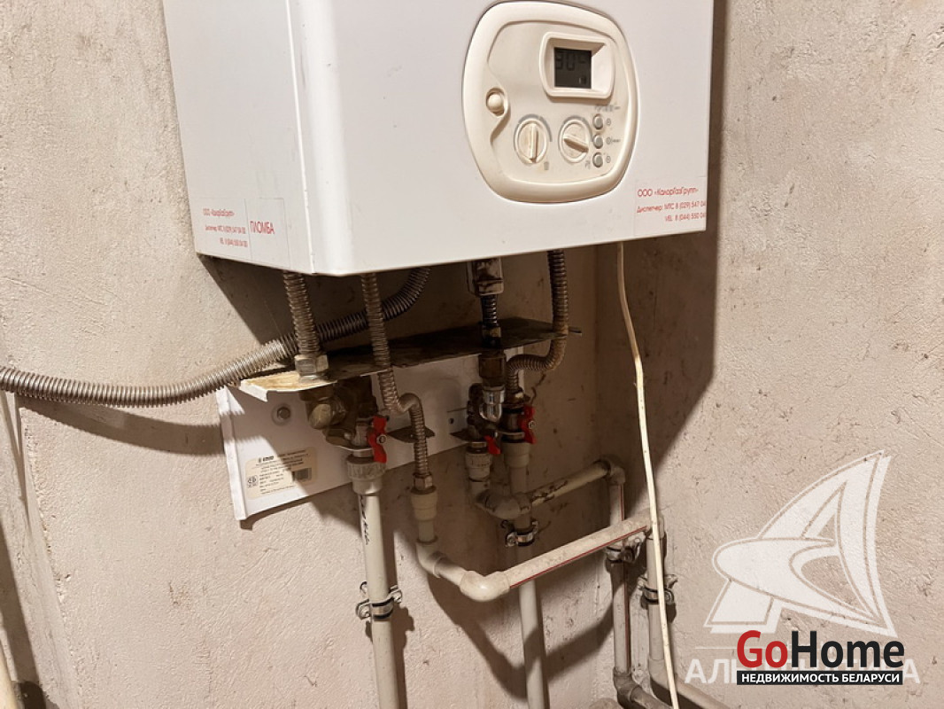 Коммуникации: отопление - газовый котел, газ - централизованный (в доме), водоснабжение - скважина, электричество - централизованное, канализация - автономная.