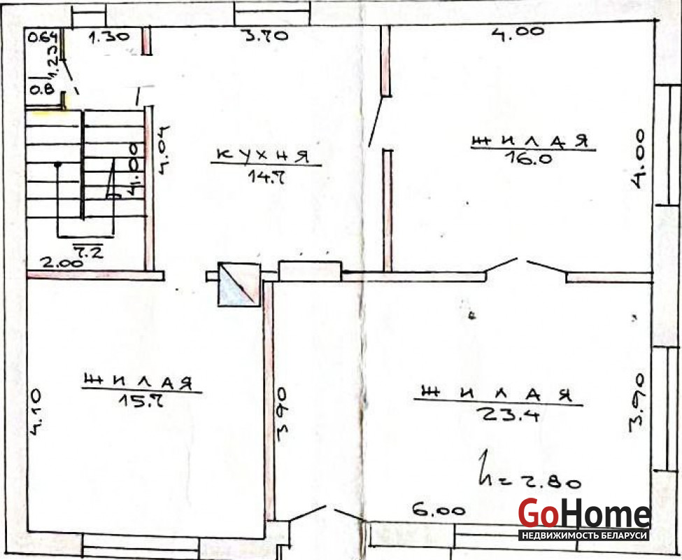 Общая площадь-69.8 кв.м, жилая- 55.1 кв.м.