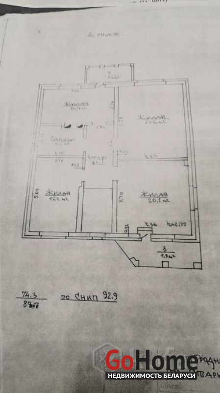 Жилой дом в г.Бресте. 2004 г.п. 2 этажа, цокольный этаж, мансарда. Общ.СНБ - 375,4 кв.м, общ.- 247,8 кв.м, потолки - 3 м. Стены: газосиликатный блок, кирпич. Кровля: Шифер. Фундамент: блок ФБС, подушка - бетонная. Коммун…