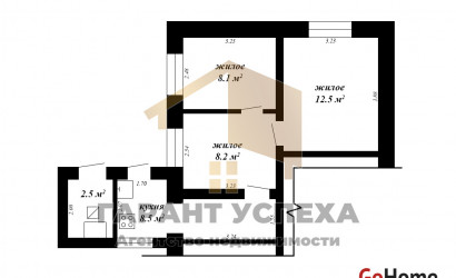 Общая площадь составляет 39,8 кв.м., жилая – 28,8 кв.м. Квартира включает три жилых комнаты, проходную кухню площадью 8,5 кв.м. В доме стены оклеены обоями, а потолок кассетонами. Рядом с квартирой расположена топочная с напольным газовым котлом.