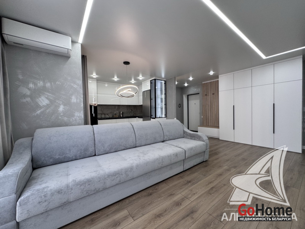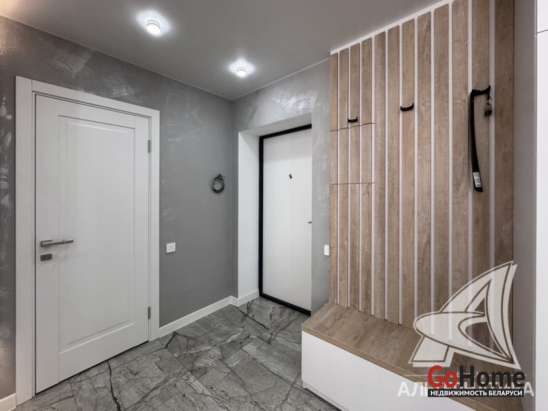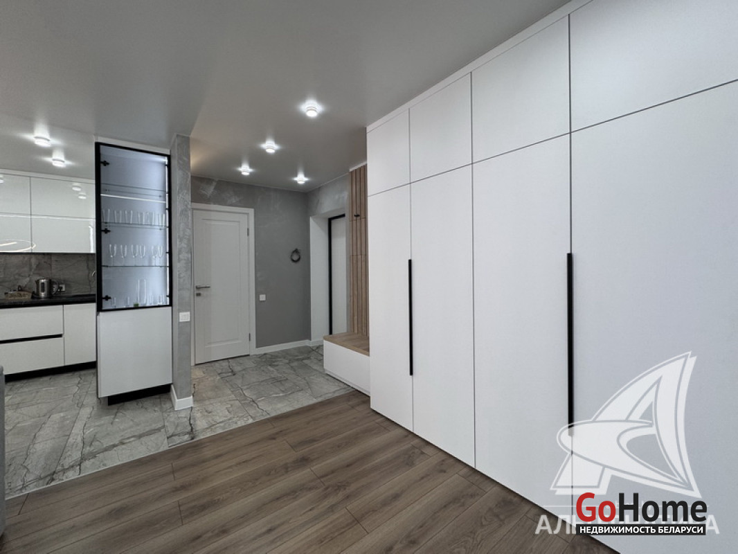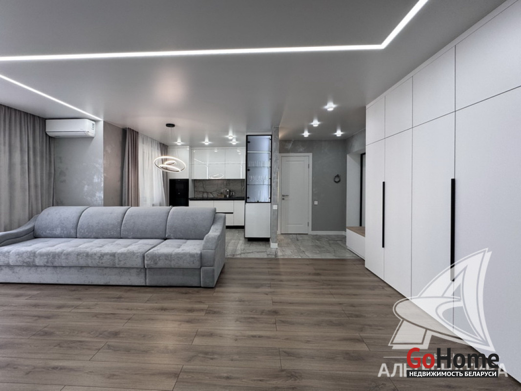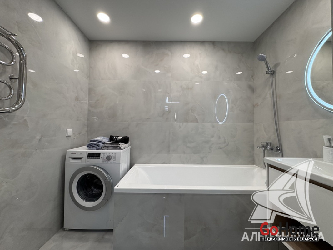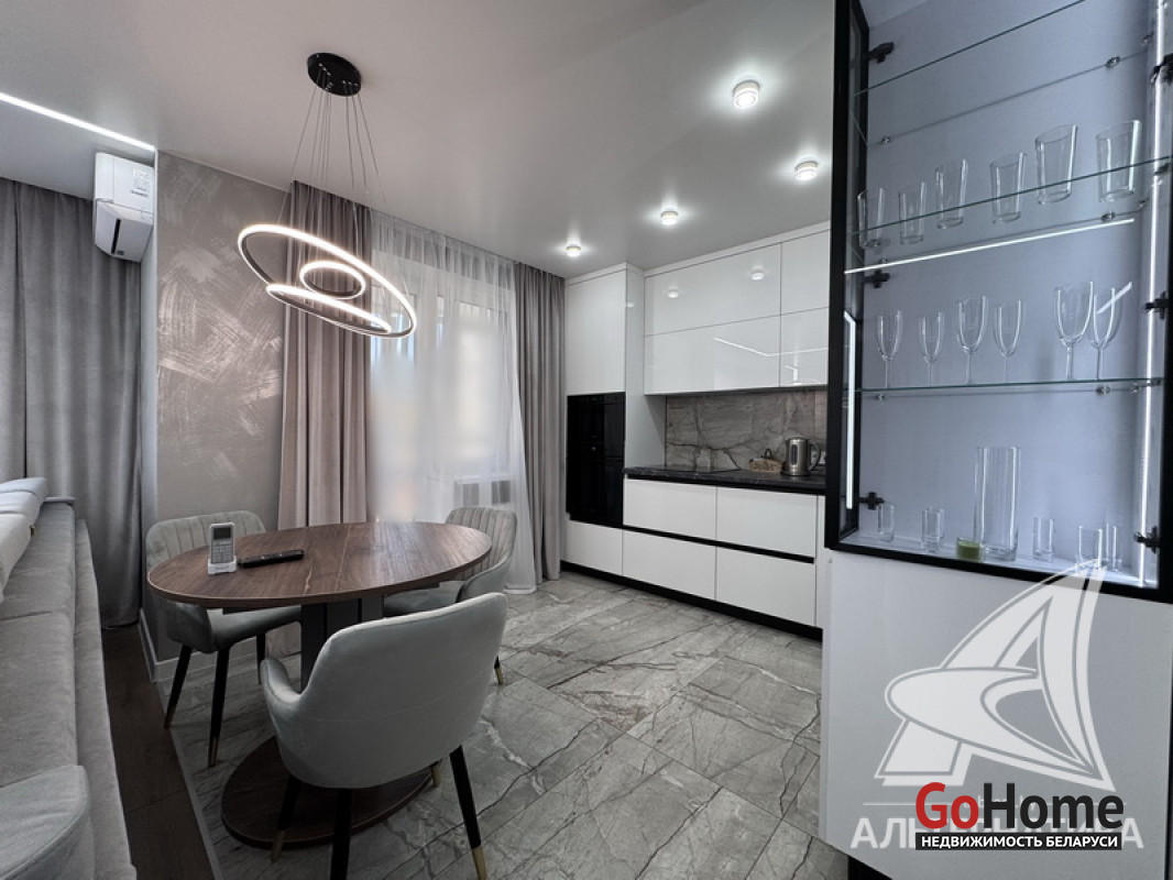 2-комнатная квартира, г. Брест, ул. Гоголя, 2024 г.п., 9 / 9 кирпич, 61,0 / 58,0 / 51,9 / 40,1, санузел раздельный, лоджия, стеклопакеты, межкомнатные двери - экошпон, входная дверь металлическая, потолки - натяжные, одноуровневые, с разноплановой системой освещения, полы - ламинат и керамогранит, в санузле современная плитка, заменена сантехника, заменен полотенцесушитель, акриловая ванна (Cersanit), инсталляция, гигиенический душ, кондиционер, телефон, домофон. Кухонный гарнитур, варочная поверхность и холодильник (Bosch), вытяжка, духовой шкаф и микроволновая печь (Whirpool), диван, кровать. Квартира с индивидуальными дизайнерскими решениями. Чистый подъезд. Во дворе игровая детская площадка, парковка для автомобилей. Лот - 250903