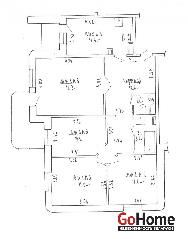 4-комнатная, 103/61.6/9.4 м2, Этаж 11 из 19, 2014 г.