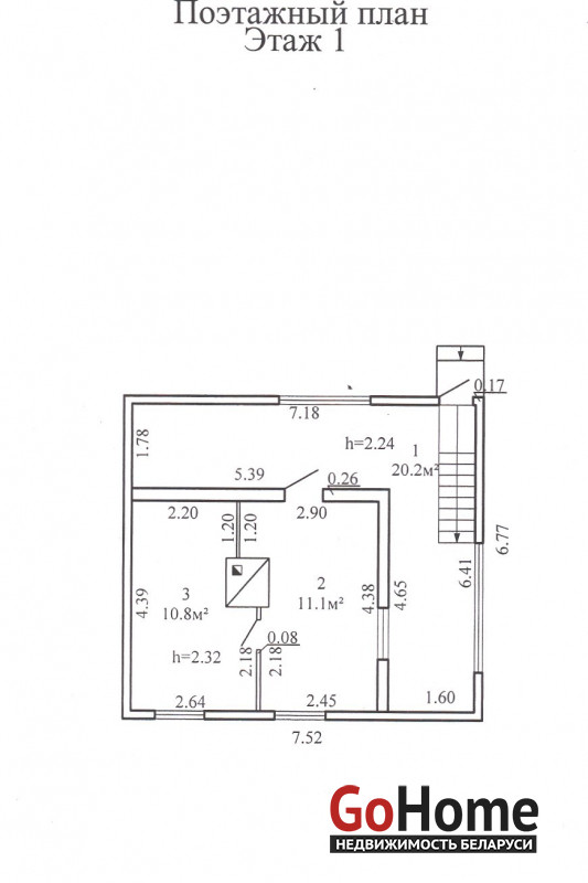 4-комнатная, 52/39/12.4 м2, (15 соток), 1 эт.