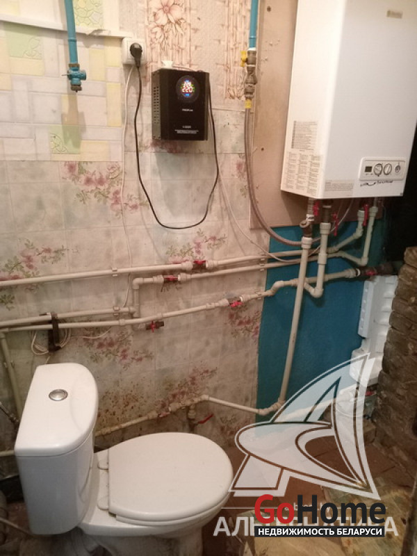 Коммуникации: отопление - печь и газовый котел, газ - централизованный (в доме), водоснабжение - централизованный водопровод и колодец, электричество - централизованное, канализация - автономная.