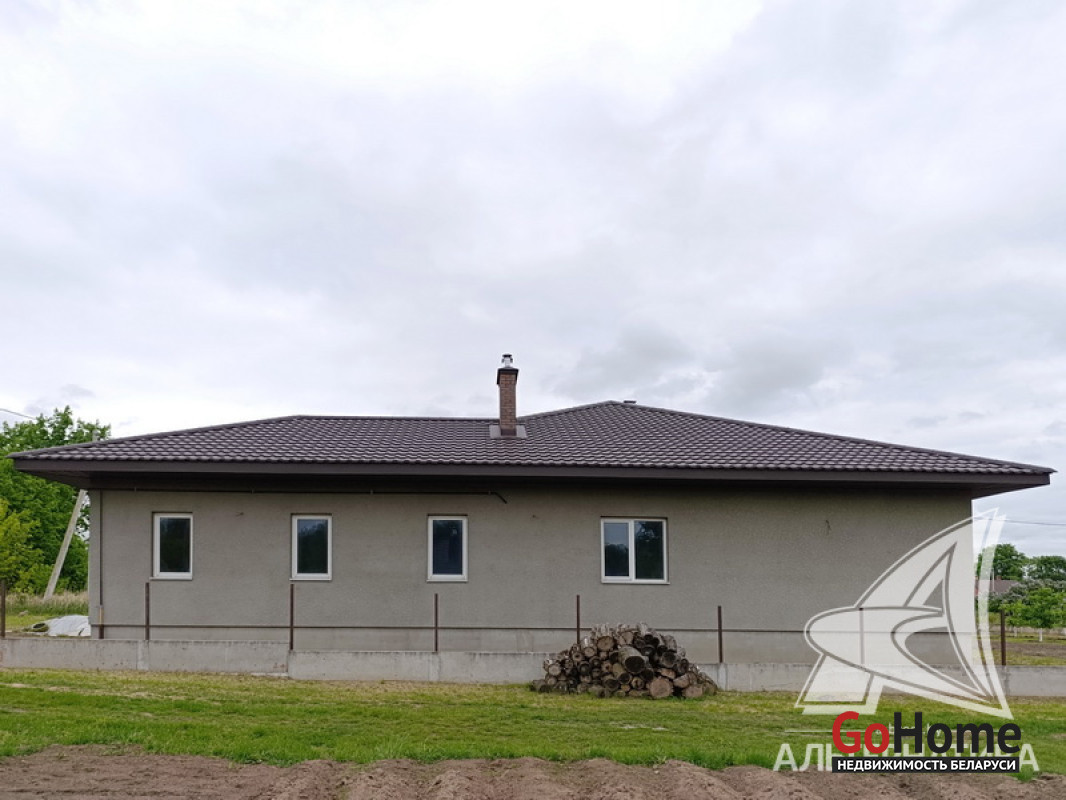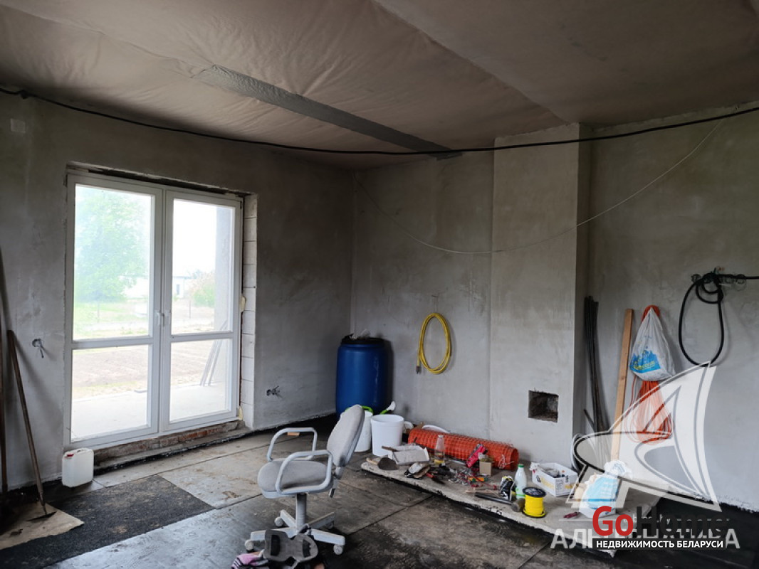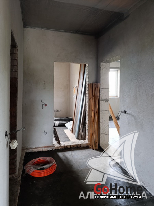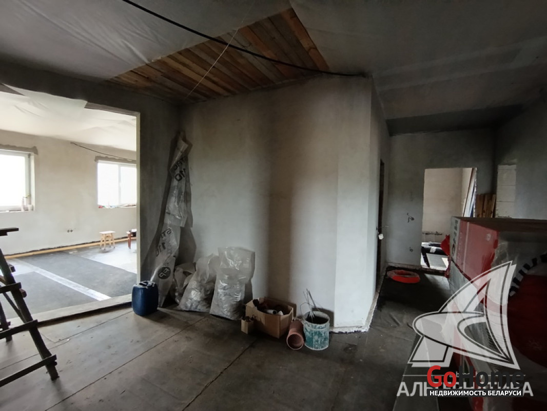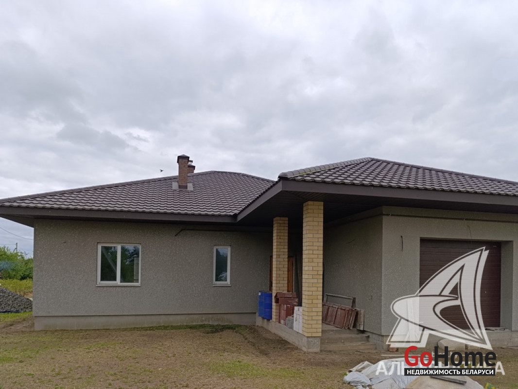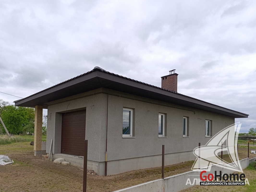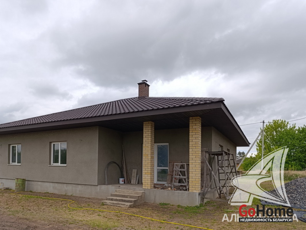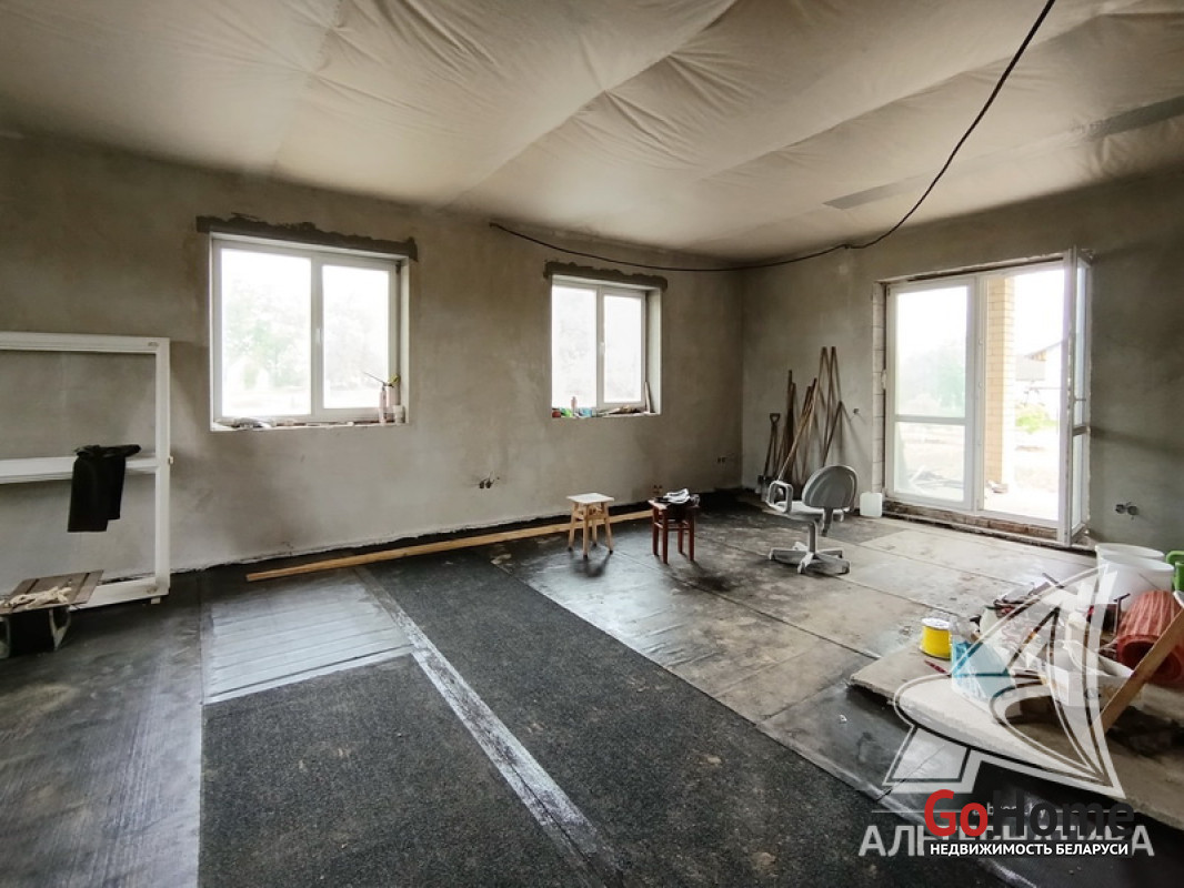 Дом под чистовую отделку в Брестском р-не.2022 г.п. 1 этаж. Общ.СНБ - 149,4 кв.м, общ.- 82,5 кв.м, жил.- 13,5 кв.м, кух.- 13,5 кв.м. 4 комнаты, высота потолка - 2,80 м.