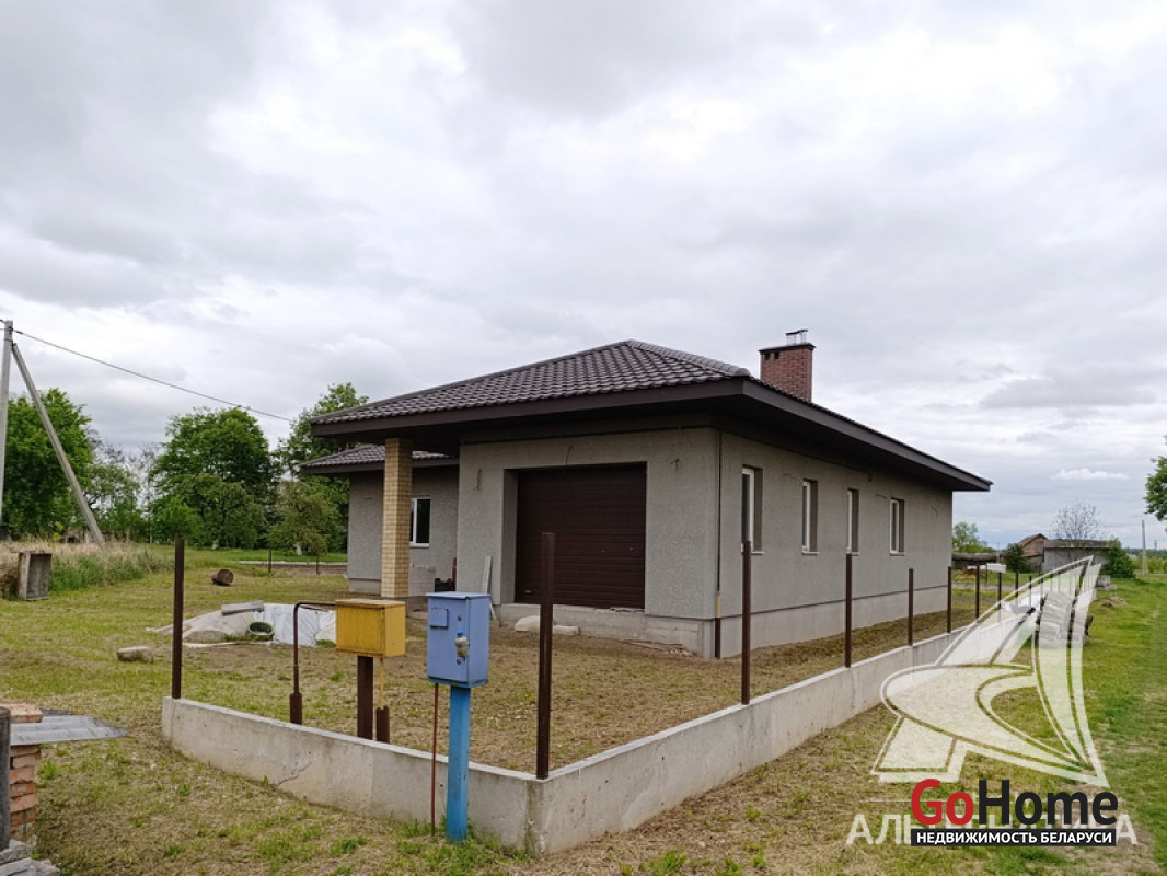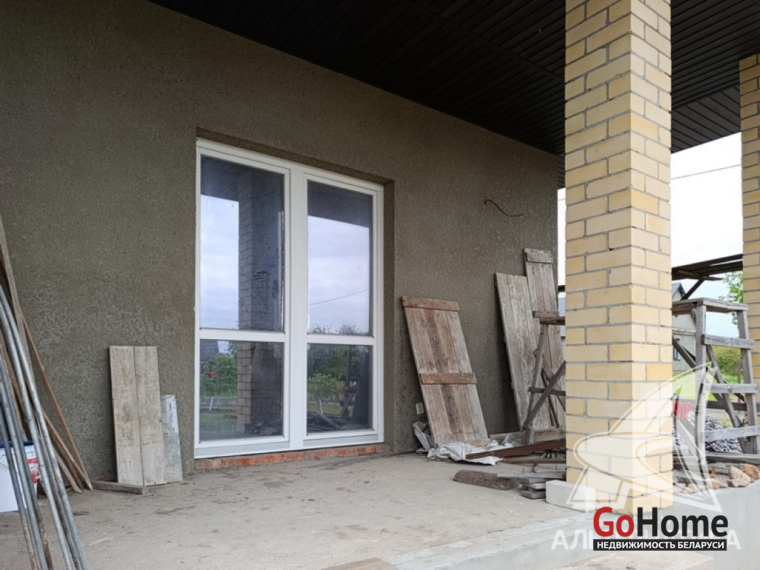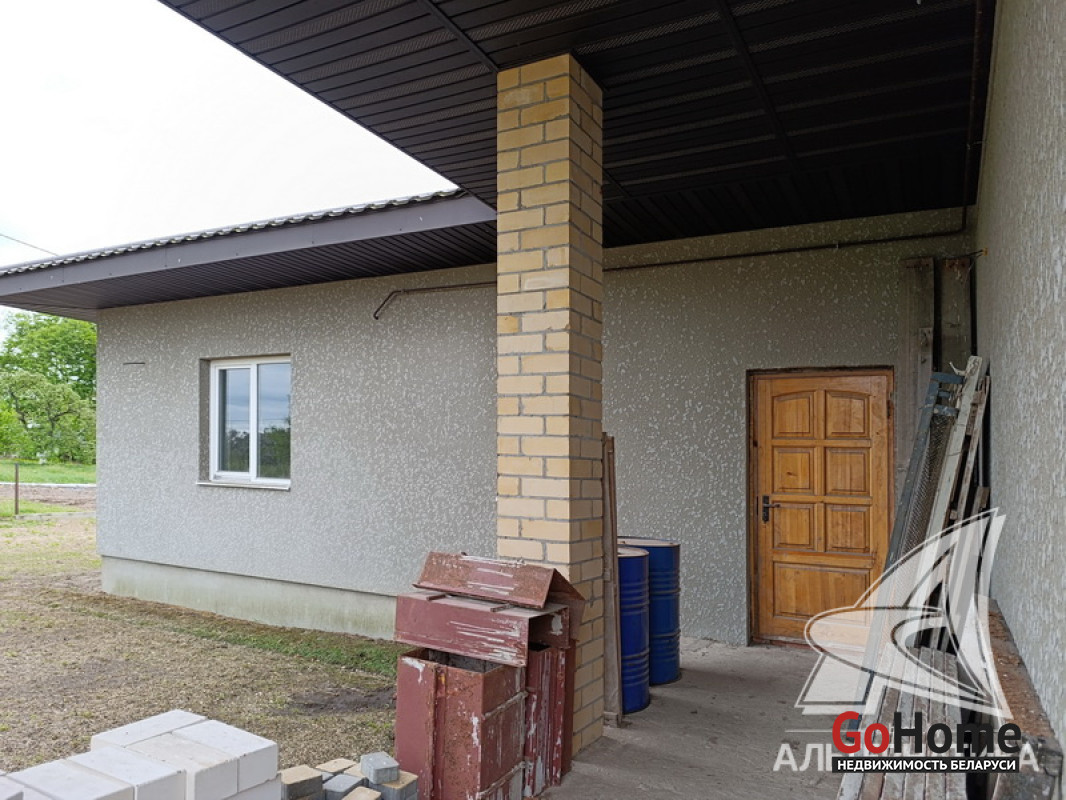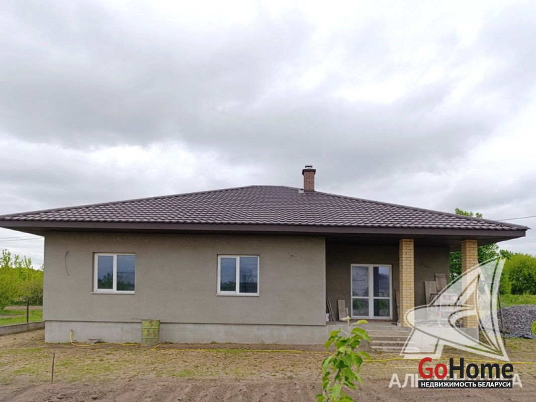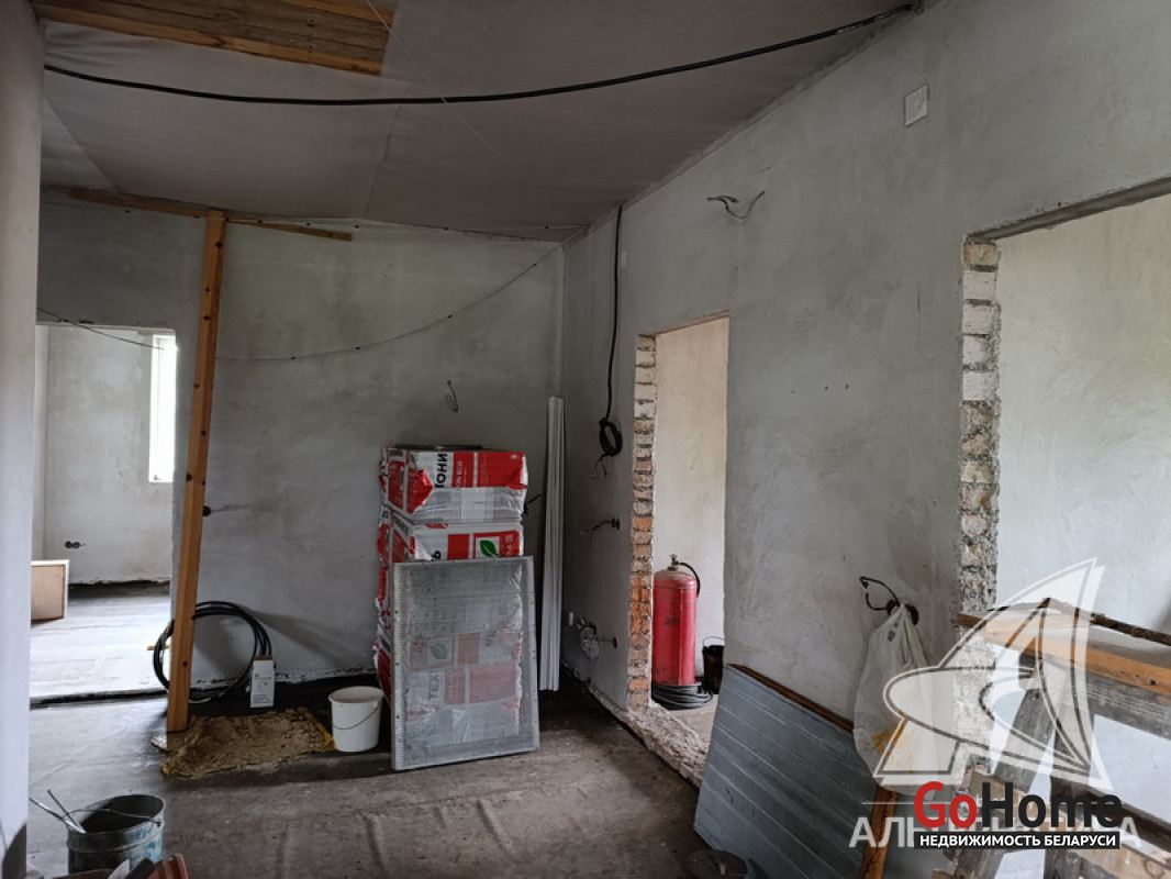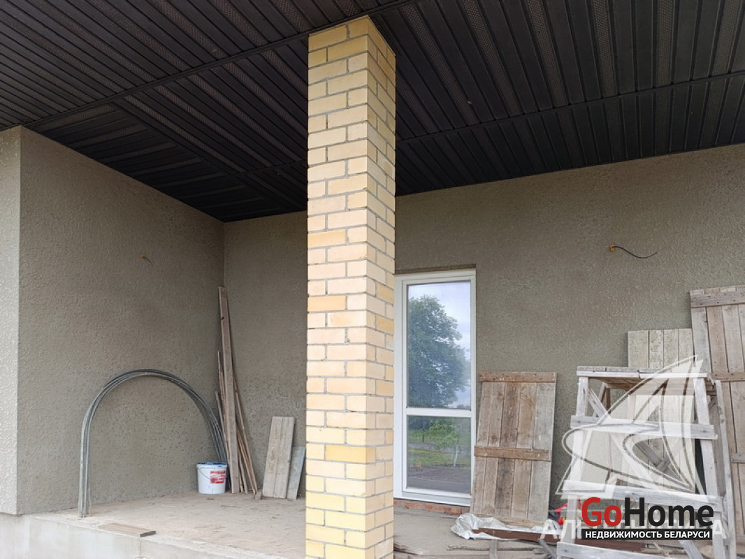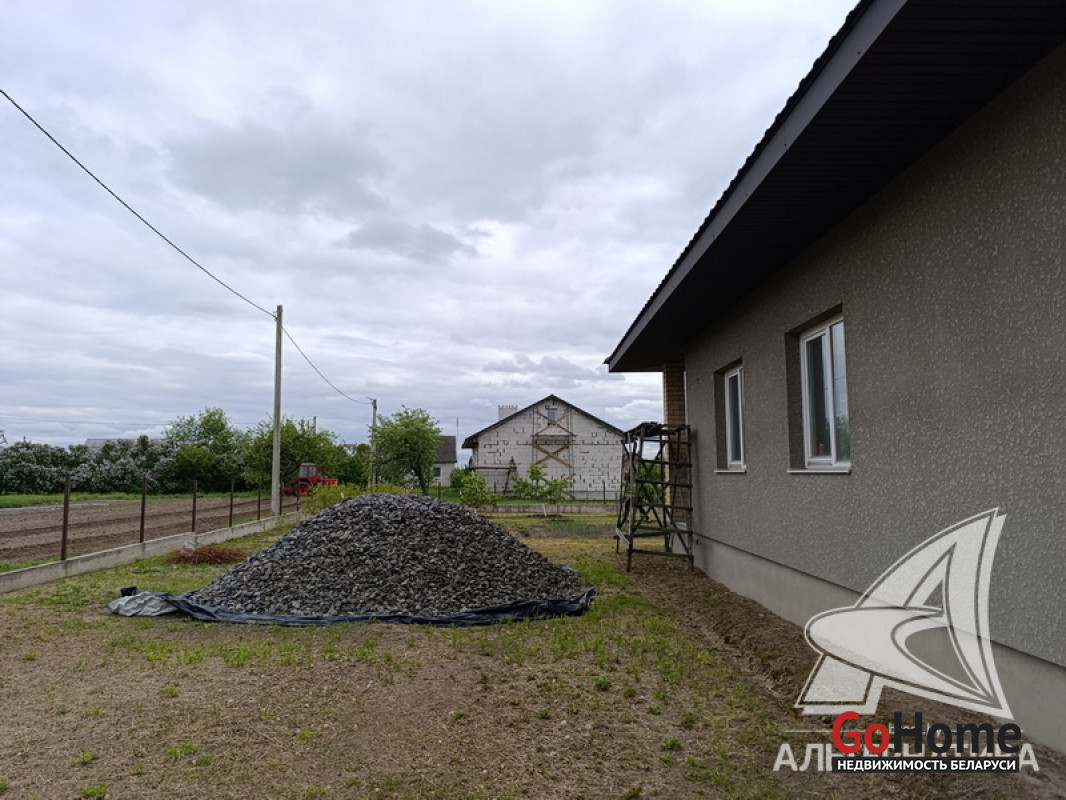 Дом под чистовую отделку в Брестском р-не.2022 г.п. 1 этаж. Общ.СНБ - 149,4 кв.м, общ.- 82,5 кв.м, жил.- 13,5 кв.м, кух.- 13,5 кв.м. 4 комнаты, высота потолка - 2,80 м.