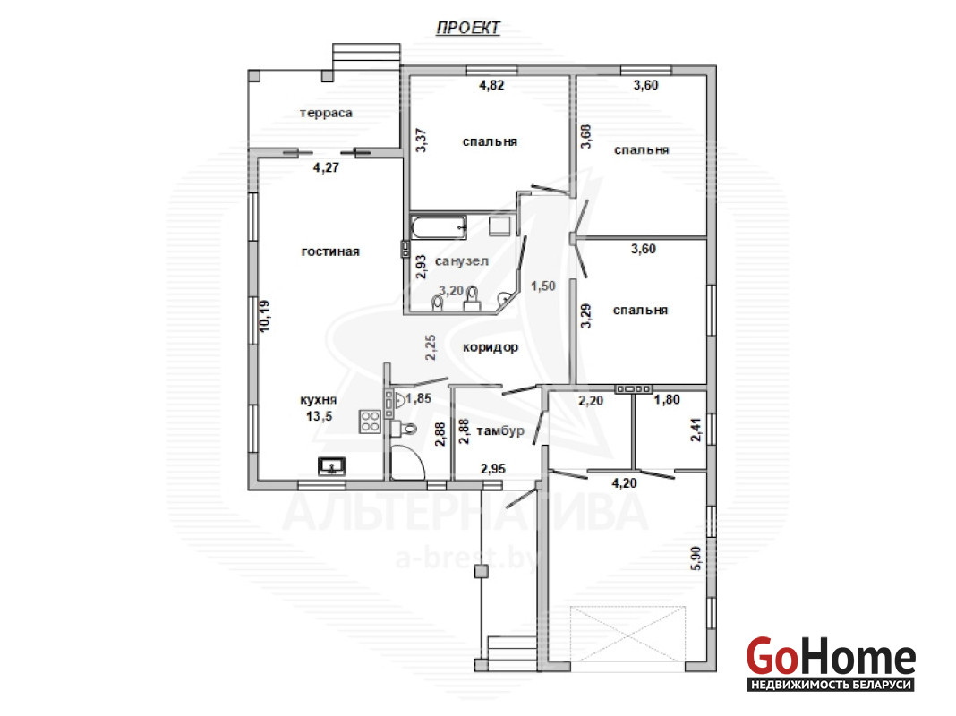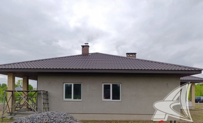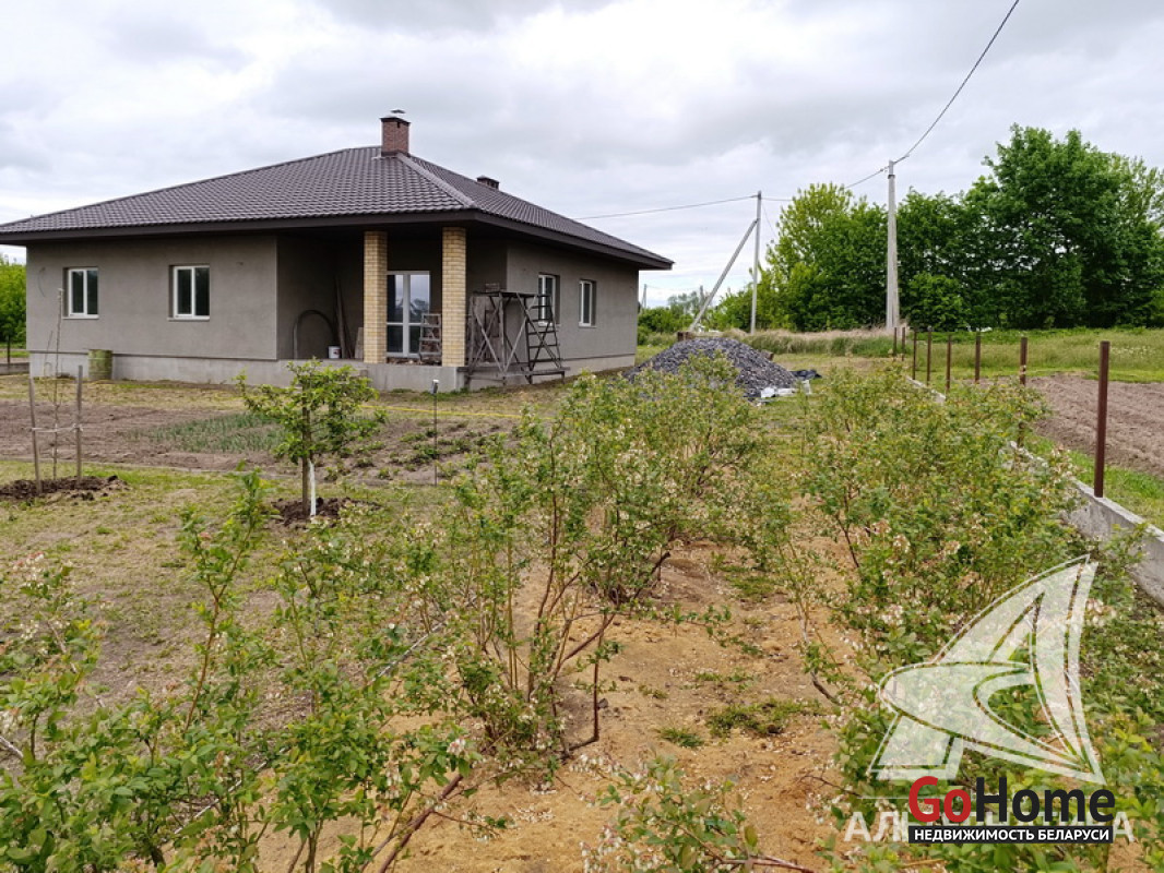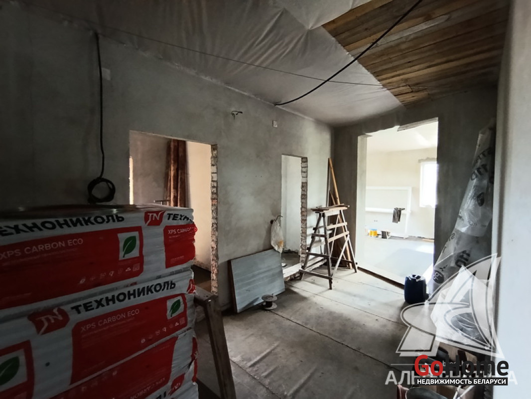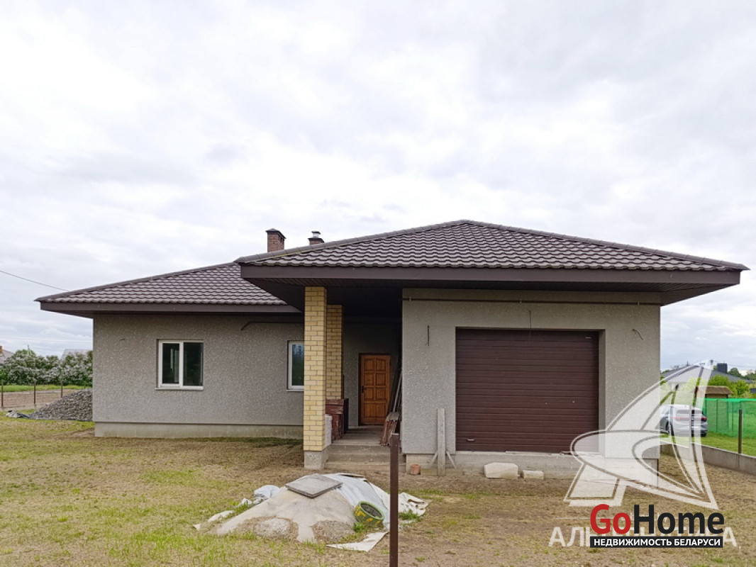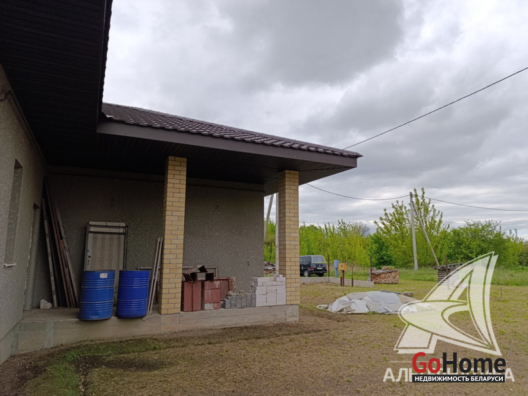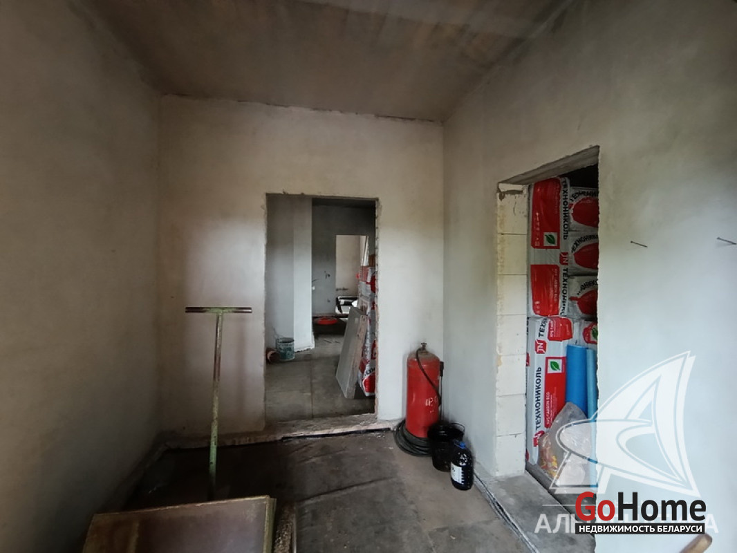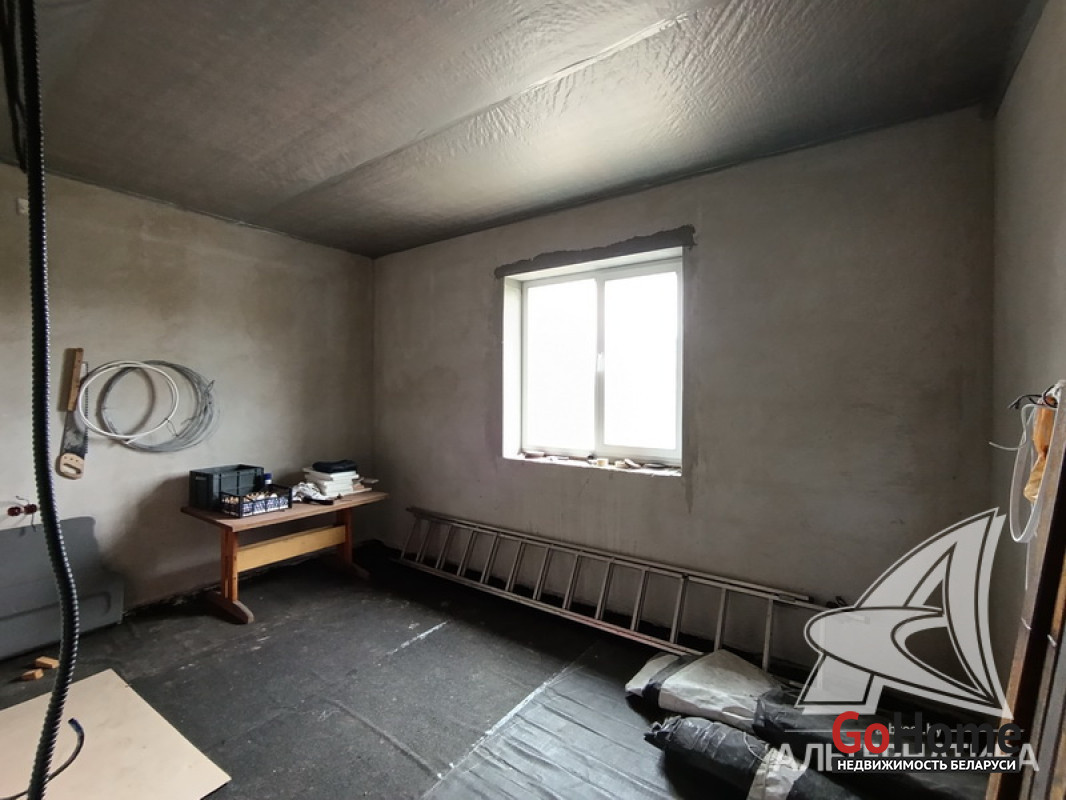 Дом под чистовую отделку в Брестском р-не.2022 г.п. 1 этаж. Общ.СНБ - 149,4 кв.м, общ.- 82,5 кв.м, жил.- 13,5 кв.м, кух.- 13,5 кв.м. 4 комнаты, высота потолка - 2,80 м.