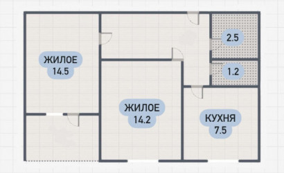 3-комнатная, 50.9/34/5.5 м2, Этаж 1 из 5