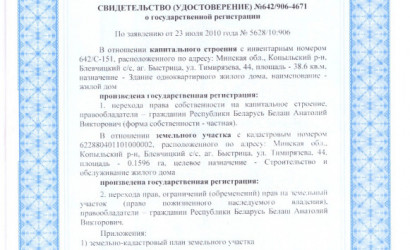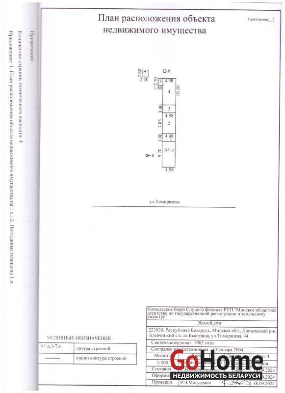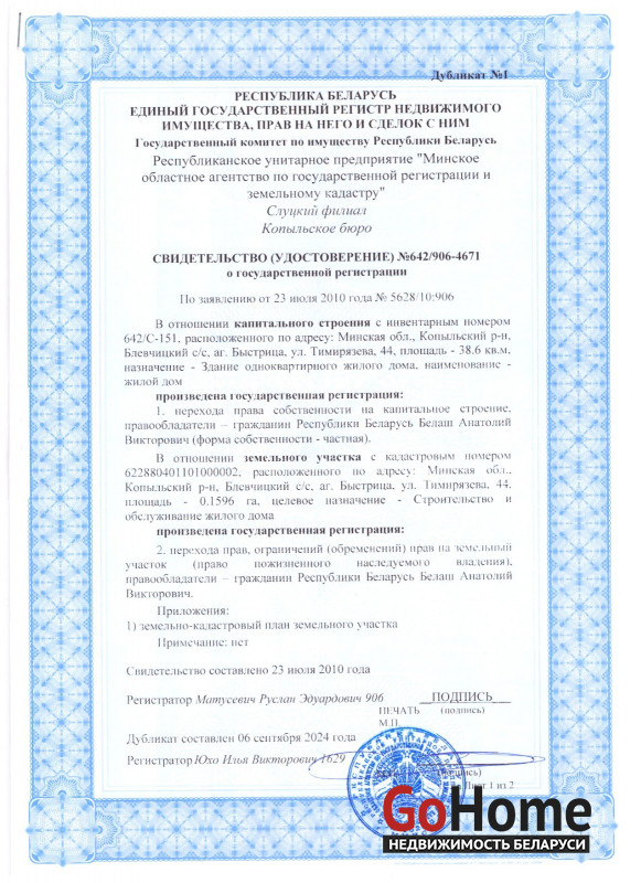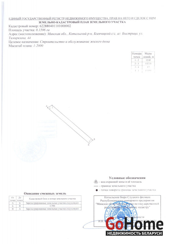 расположенного по адресу: Минская обл.,Копыльский р-н, Блевчицкий с/с, аг. Быстрица, ул. Тимирязева, д. 44, участок 0.1596 га.