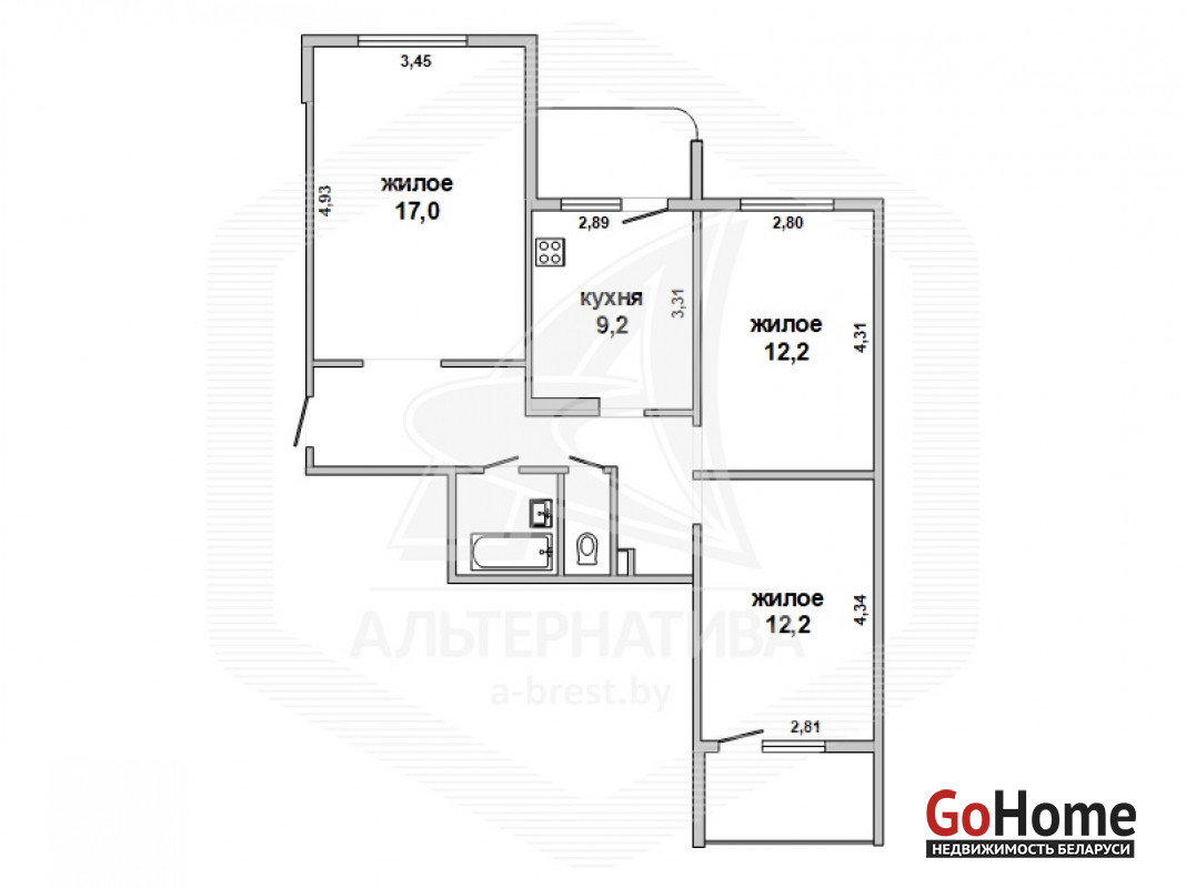 2-комнатная квартира, г. Брест, пр-т Партизанский, 1974 г.п., 3 / 5 панель, 45,0 / 44,2 / 28,6 / 5,5, санузел раздельный, балкон, подвал, стеклопакеты и деревянные стеклопакеты, входная дверь металлическая, потолки - сне…