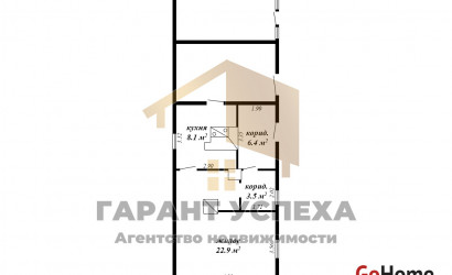 2-комнатная, 62/33.3/10.9 м2, (25 соток), 1 эт.
