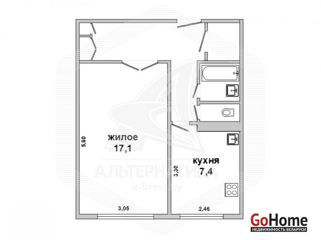 1-комнатная квартира, г. Брест, ул. Суворова, 1994 г.п., 3 / 5 панель, 37,1 / 37,1 / 17,0 / 6,9, санузел раздельный, стеклопакеты, потолки - снежка и касетоны, полы - ДСП, стены оклеены обоями, в ванной плитка современно…