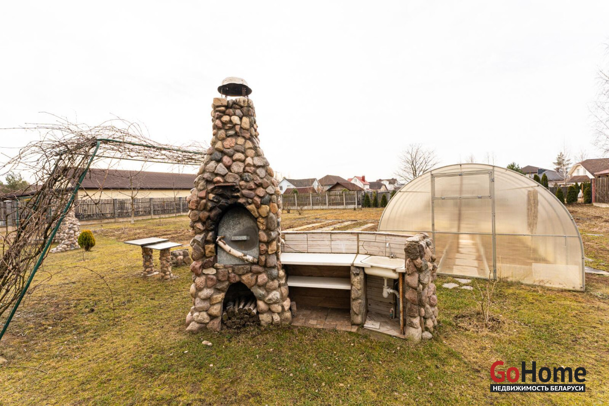 Ровный, правильной формы участок 15 соток, огорожен. С лицевой стороны уникальный забор, основа которого – природный камень. На участке шикарный газон, элементы ландшафтного дизайна, огород с теплицей и очень много пространства для реализации своих идей по благоустройству! Также организовано место для отдыха с печью для барбекю и заготовительным столом из природного камня. И даже основа под собственный пруд.