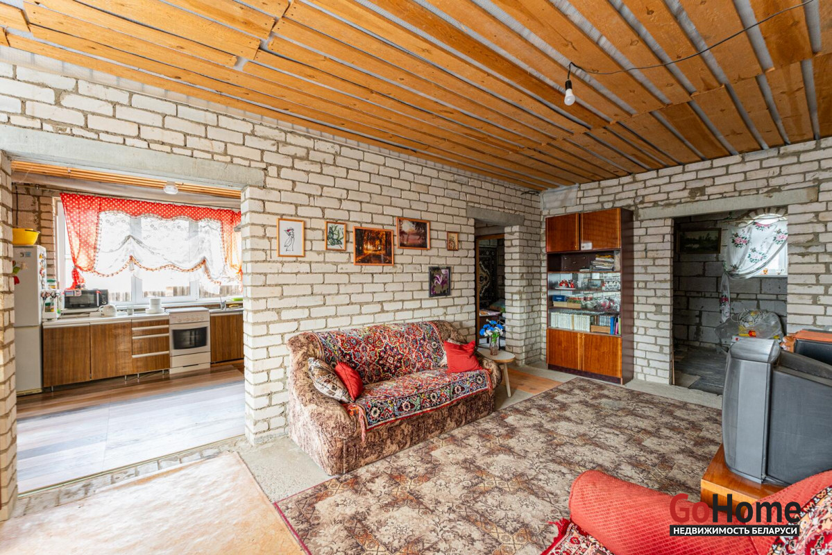 В доме – большая гостиная, кухня 16 кв.м. с выходом на веранду и задний двор, дополнительно 2 отдельные комнаты, санузел раздельный, прихожая. Год постройки 2019 г. Материал стен – блоки, обложены кирпичом. Окна – современные энергосберегающие стеклопакеты.