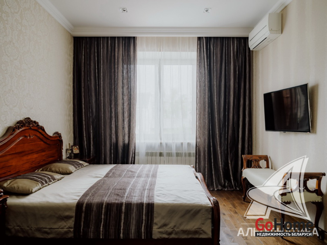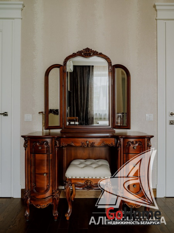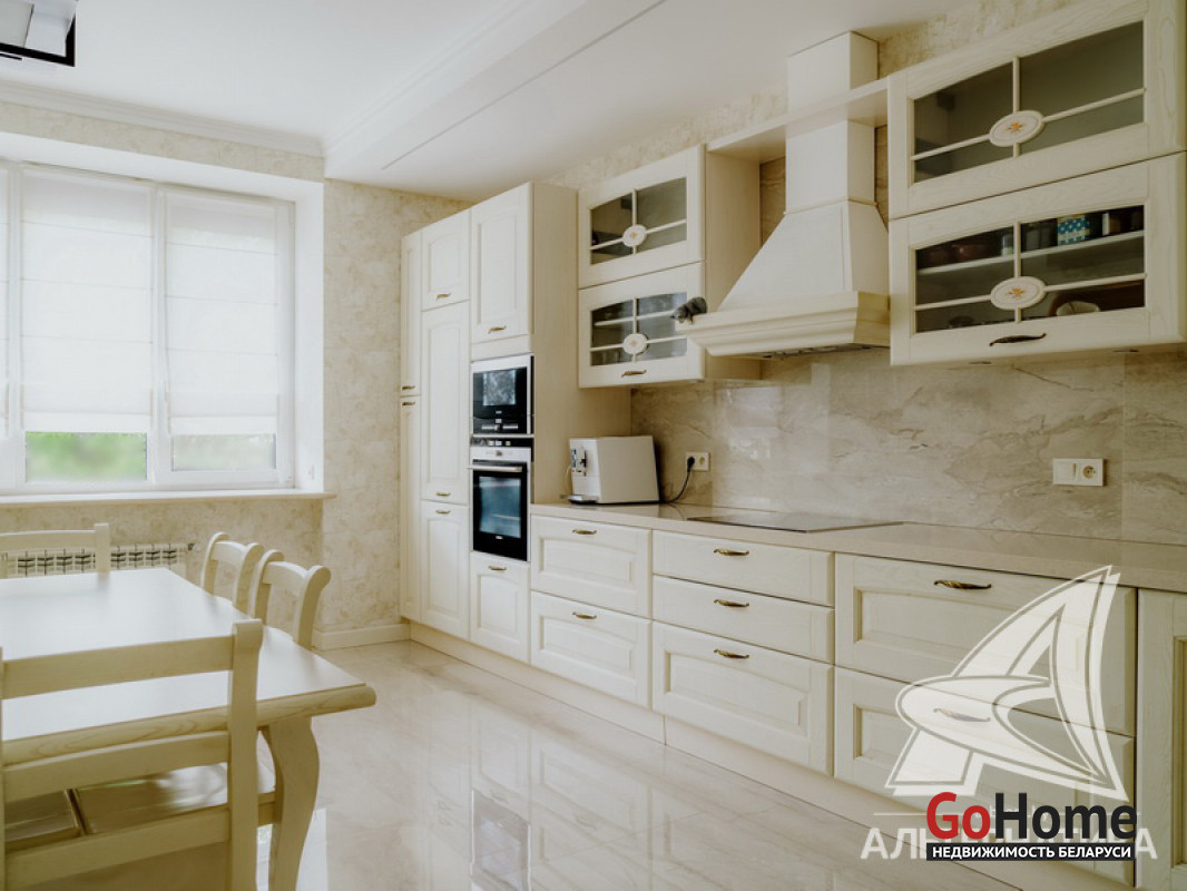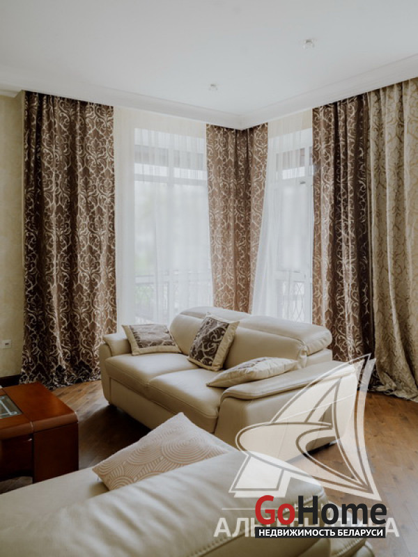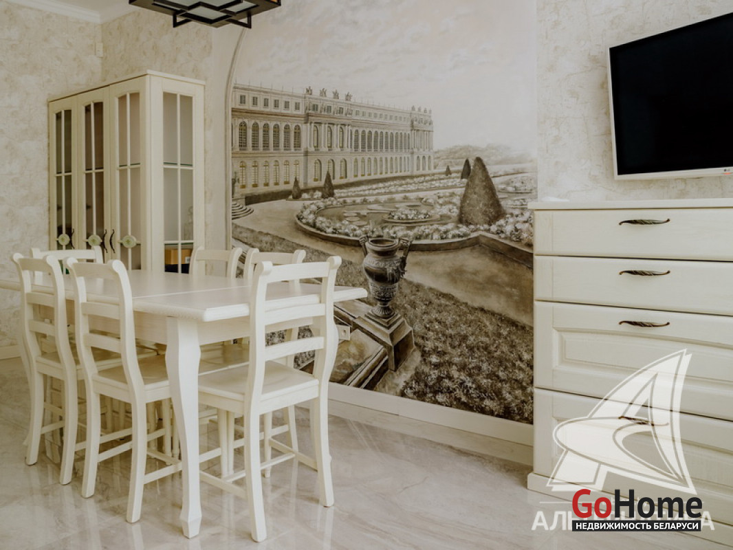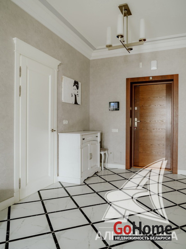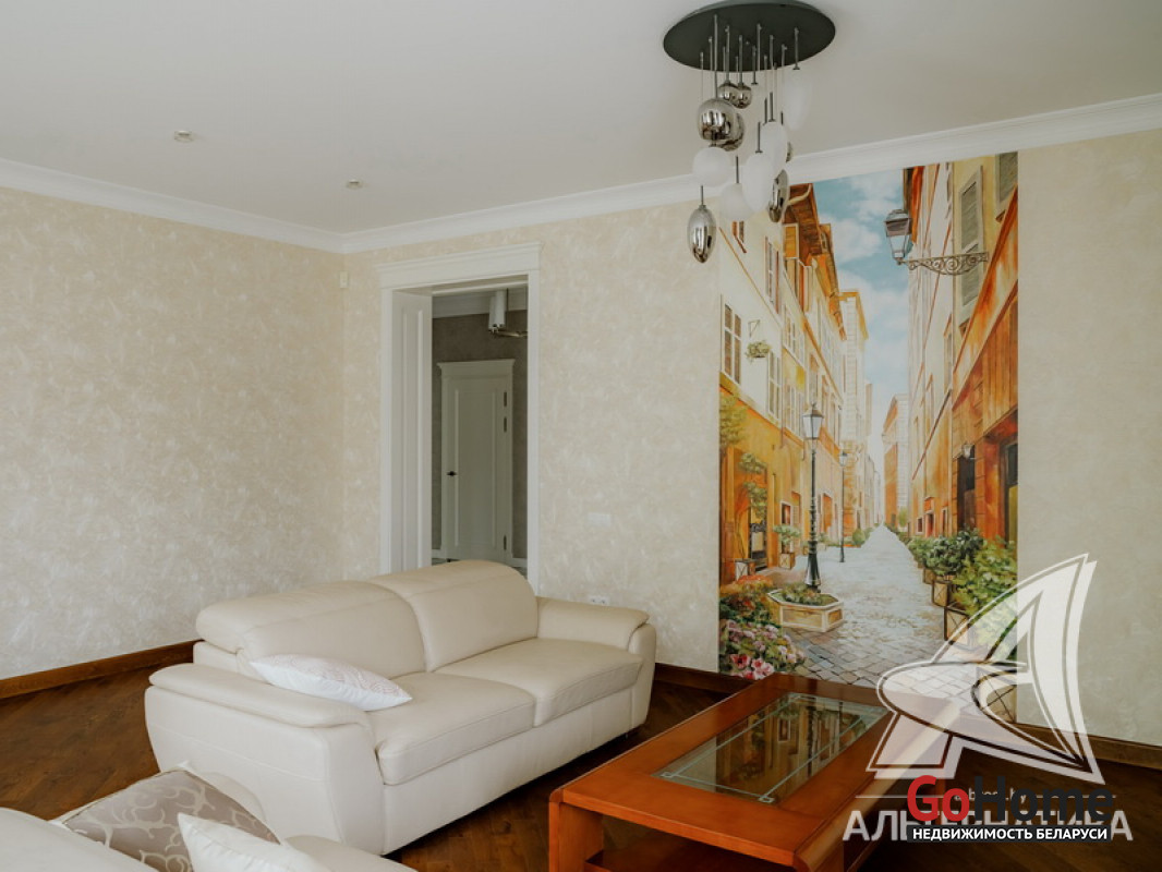 3-комнатная квартира, г. Брест, ул. Карла Маркса, 1954 г.п., 2014 г. реконструкции, 2 / 4 кирпич, 133,0 / 131,0 / 82,0 / 22,1, санузел раздельный, балкон, подвал, стеклопакеты, межкомнатные двери - массив (белый дуб), входная дверь металлическая, потолки - гипс и снежка с разноплановой системой освещения (2,96 м), полы - паркетная доска и испанская плитка (в гардеробной), стены оклеены обоями (итальянские моющие) и декоративно отделаны художественной росписью (в кухне, в комнате), подоконники из натурального камня, в санузле современная итальянская плитка (Skvirel) ванна ( Villeroy), заменены сантехнические трубы, инсталляция, камин на биотопливе, кондиционер, домофон. Итальянский кухонный гарнитур (массив), столешница из натурального камня, варочная поверхность, духовой шкаф, встроенный холодильник, посудомоечная машина, вытяжка, микроволновая печь, телевизор, стиральная машина, обеденная группа, светильники, люстры, карнизы, гардеробная, диваны из натуральной кожи (Kler), шторы и тюль (Pierre Cardin). Квартира с индивидуальными дизайнерскими решениями. Лот - 250942