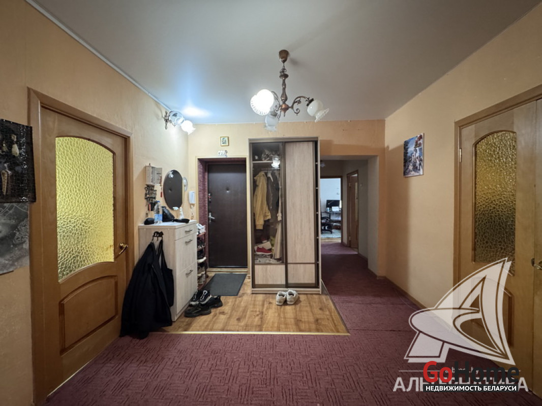 4-комнатная квартира, г. Брест, ул. Чкалова, 1969 г.п., 2 / 5 кирпич, 107,0 / 100,9 / 64,2 / 12,9, санузел раздельный, две лоджии, подвал, стеклопакеты, межкомнатные двери - массив, входная дверь металлическая, натяжные потолки (2,7 м), полы - паркет (в комнатах), линолеум (в кухне) и ковролин (в прихожей) - положены на доску, стены оклеены обоями, в санузле современная плитка, чугунная ванна, телефон, домофон. Мебель по договоренности. Квартира в жилом состоянии. Чистый подъезд. Окна выходят на парк, сквер, зеленую зону. Во дворе игровая детская площадка, парковка для автомобилей. Лот - 250934